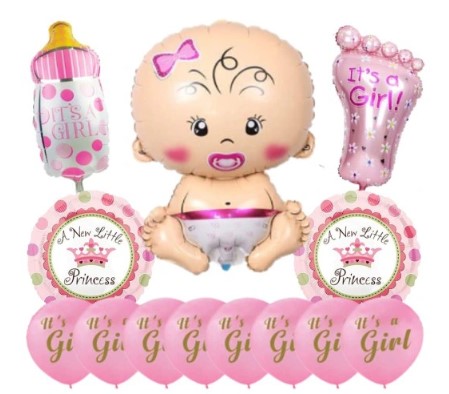 - 8 x balon różowy napis: „IT’S A GIRL”