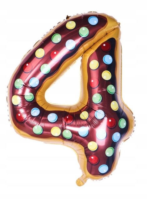 BALON FOLIOWY DUŻA CYFRA 4 KOLOROWA CIASTKO 80 CM URODZINY DEKORACJA