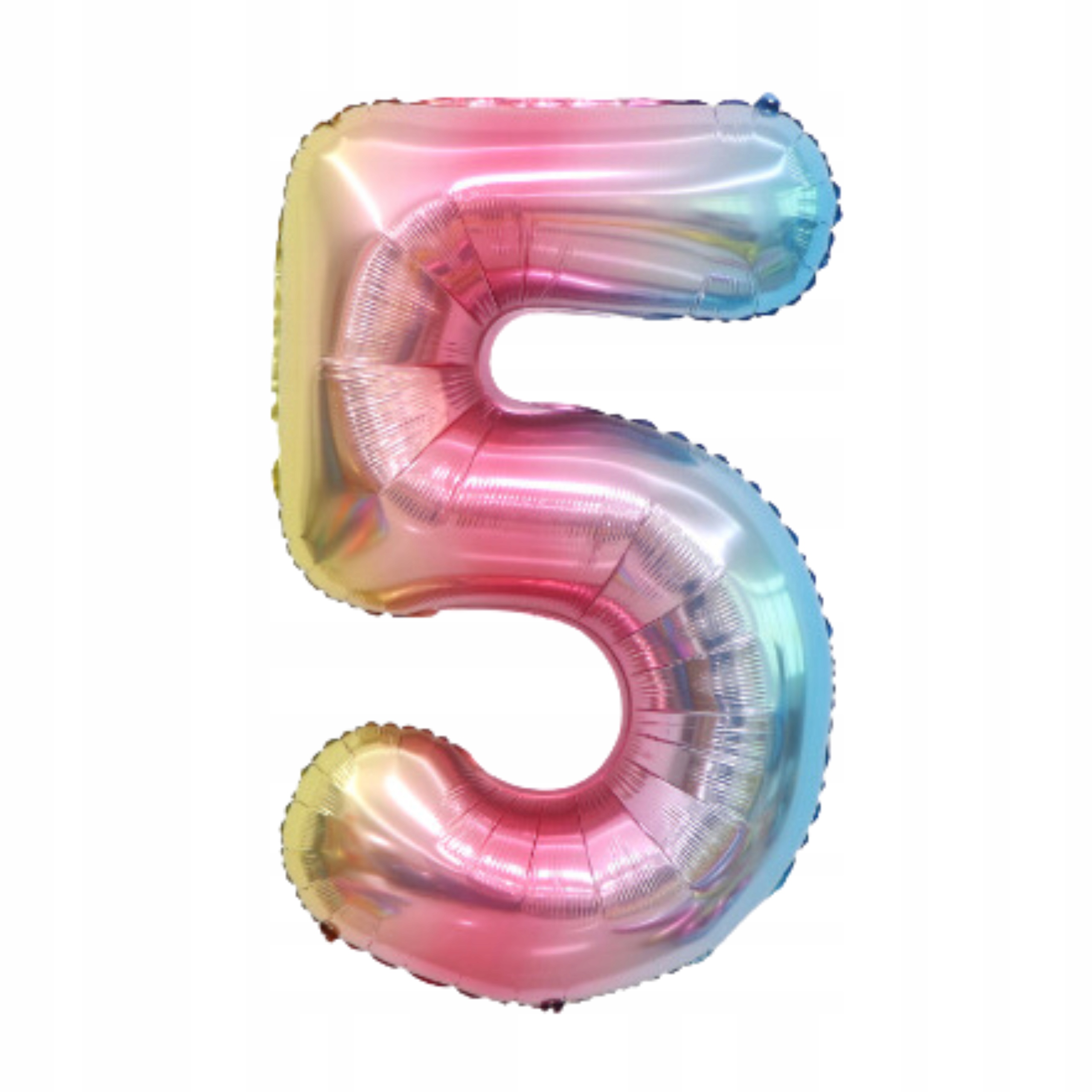 BALON FOLIOWY DUŻA CYFRA 5 KOLOROWA RAINBOW 100 cm URODZINY DEKORACJE