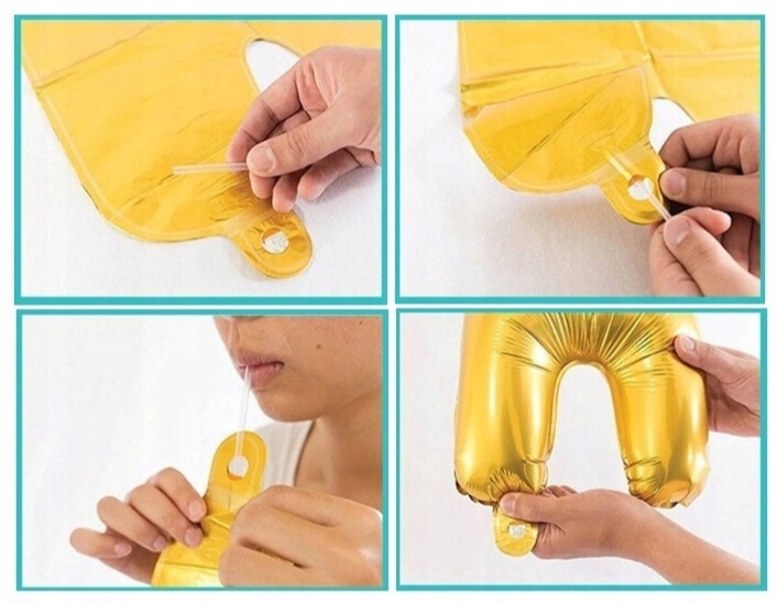 4️⃣ Po napompowaniu usuń słomkę oraz ściśnij uszczelkę, aby powietrze nie uciekało z balona.