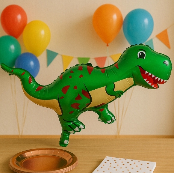 Zamień każdą imprezę w prawdziwą prehistoryczną przygodę! Zielony balon w kształcie dinozaura Tyranozaura to hit każdego przyjęcia — dzieci go uwielbiają!