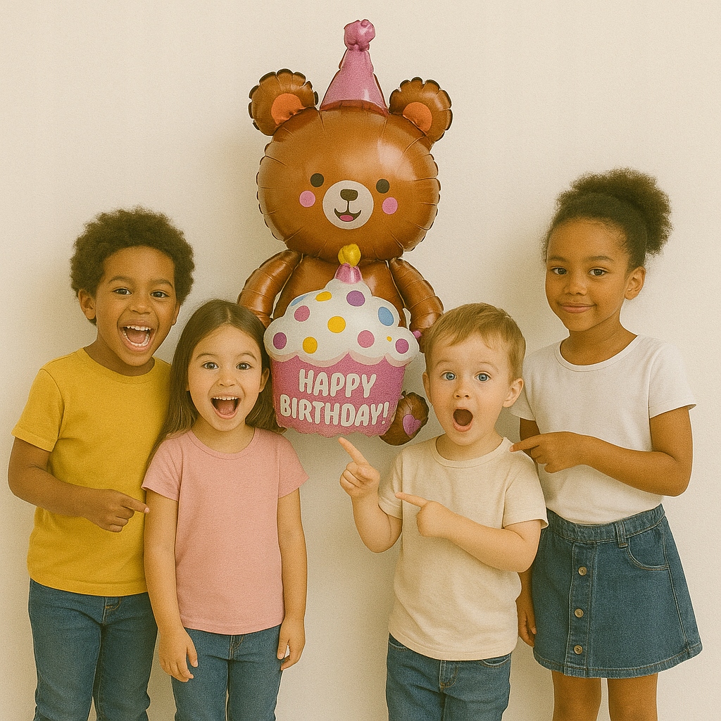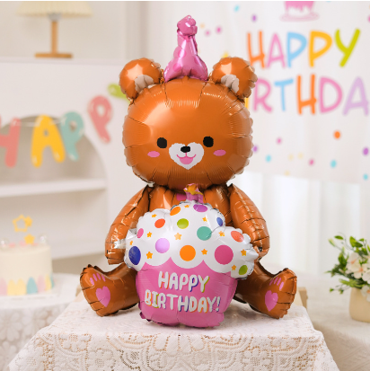 Balon foliowy w kształcie siedzącego brązowego misia to idealna ozdoba dla małych księżniczek! Uroczy, miękki w wyglądzie, z serduszkiem i łapkami – rozczula i zachwyca każdego gościa.