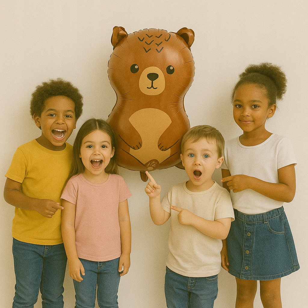Balon foliowy w kształcie brązowego misia to idealna ozdoba dla małych księżniczek! Uroczy, miękki w wyglądzie, z serduszkiem i łapkami – rozczula i zachwyca każdego gościa.