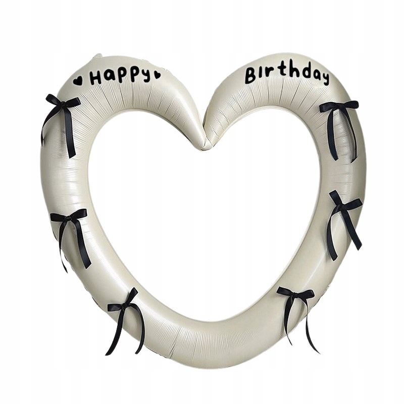 Balon serce beżowy w czarne kokardki HAPPY BIRTHDAY ramka do selfie zdjęć dekoracja urodziny impreza party