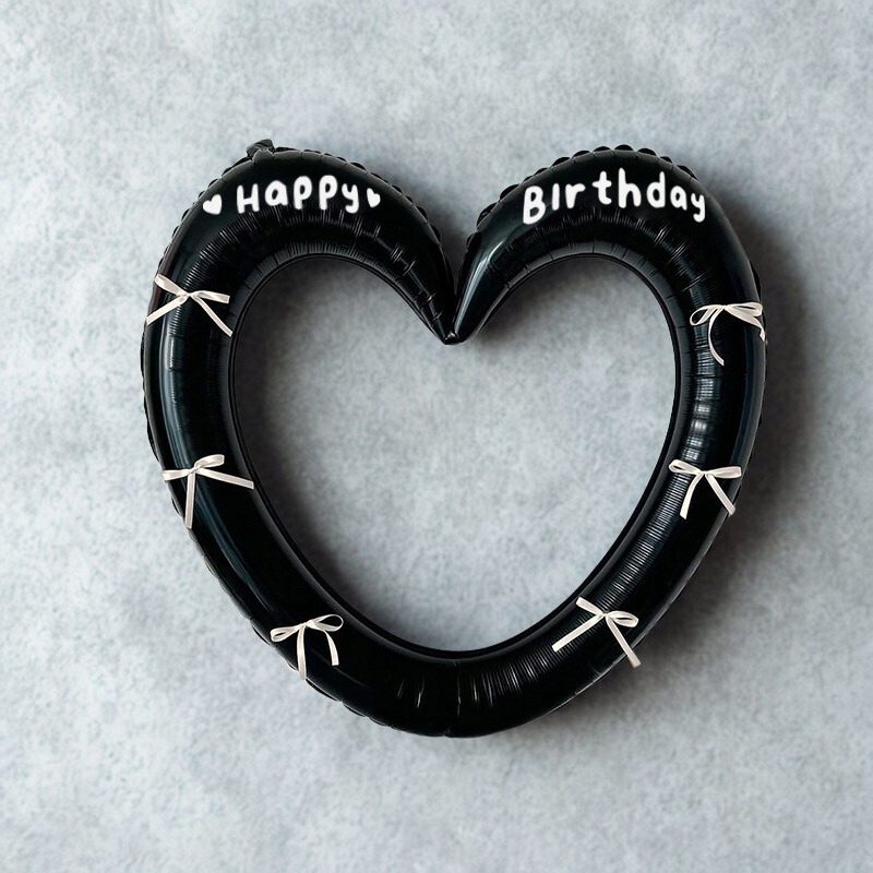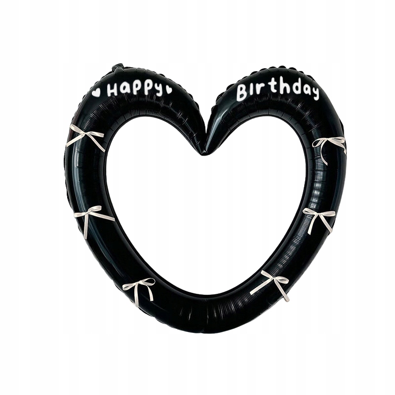 Balon serce czarny w białe kokardki HAPPY BIRTHDAY ramka do selfie zdjęć dekoracja urodziny impreza party