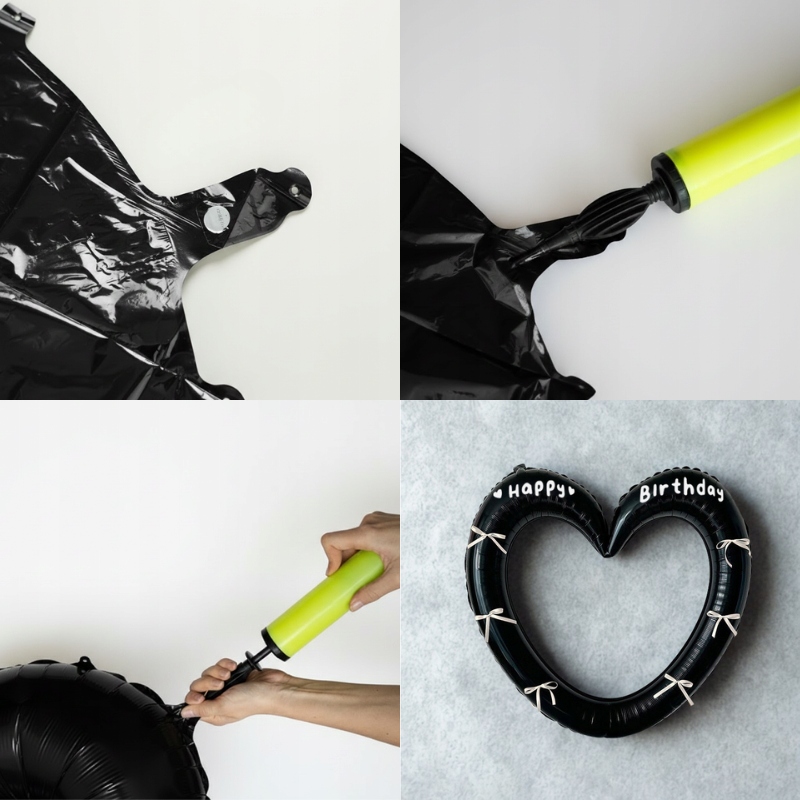 Balon foliowy można pompować helem lub powietrzem. Napełnienie helem pozwoli balonowi unosić się, jednak zalecamy zabezpieczenie go sznurkiem, aby utrzymać go w wybranym miejscu i pozycji.
