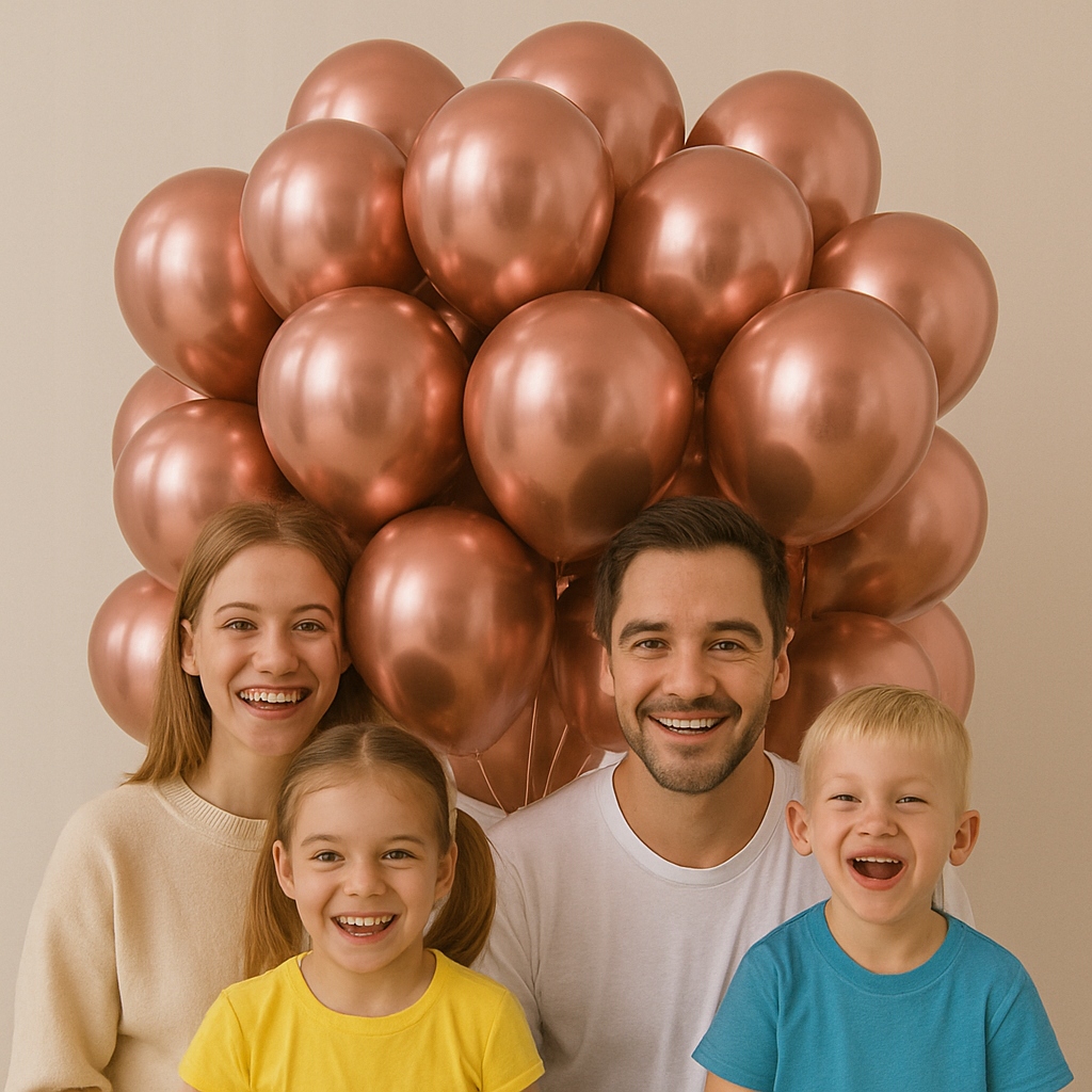 Nadaj dekoracjom elegancki, modny blask! Chromowane balony w kolorze rose gold pięknie odbijają światło i świetnie wyglądają na zdjęciach – idealne do stworzenia efektownej ścianki, girlandy lub dekoracji stołu.