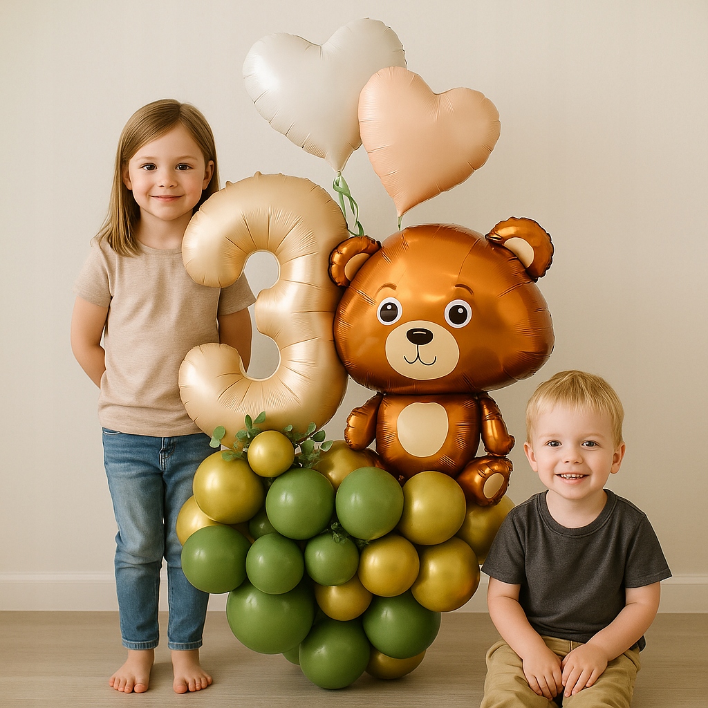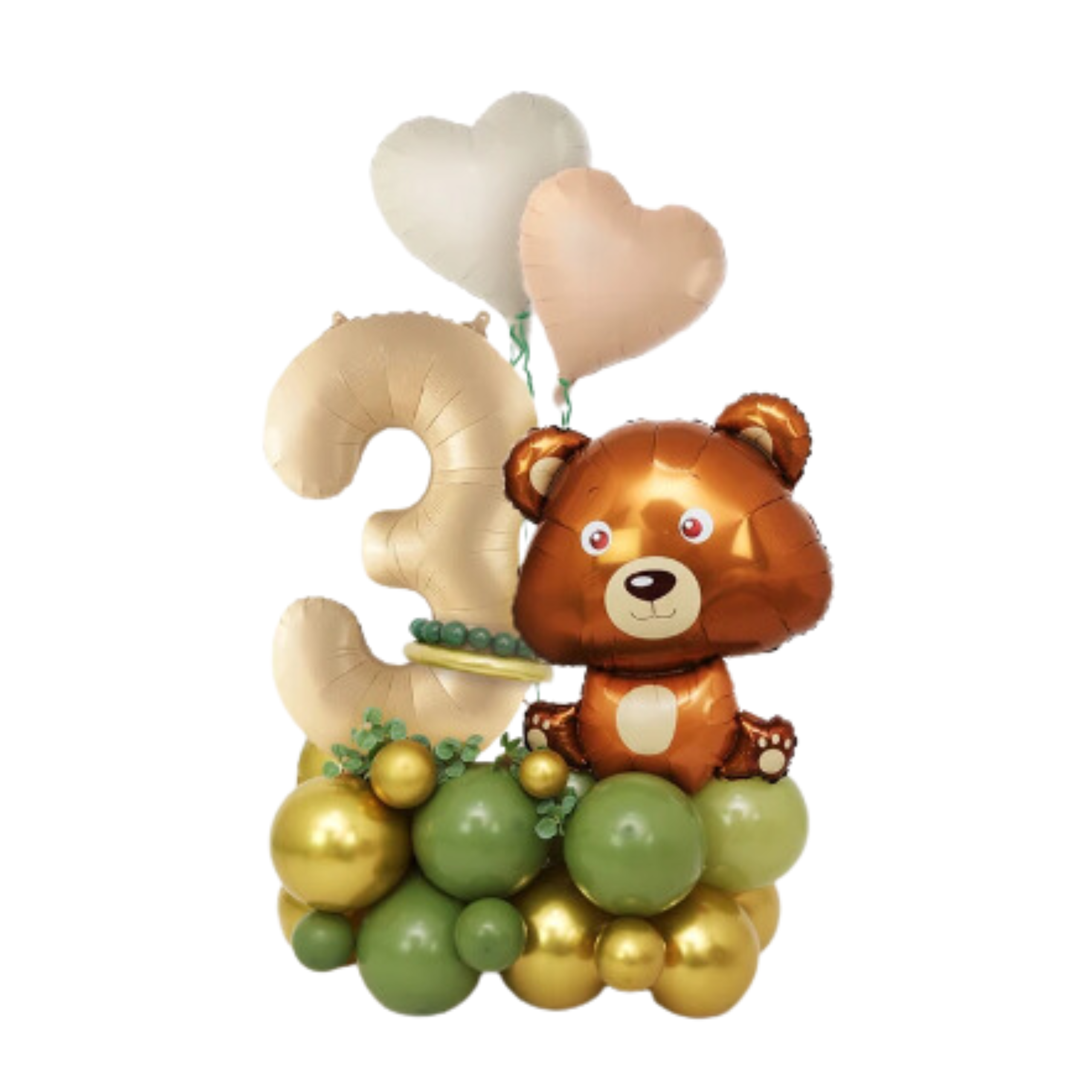 BALONY foliowe Z CYFRĄ 3 MIŚ MISIO ZESTAW SERDUSZKA URODZINY PARTY