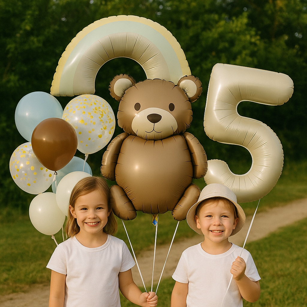 ✅Stwórz magiczną atmosferę na 5. urodzinach Twojego dziecka! Ten uroczy zestaw balonów z cyfrą 5, misiem i kolorową tęczą to doskonała dekoracja na każdą dziecięcą imprezę