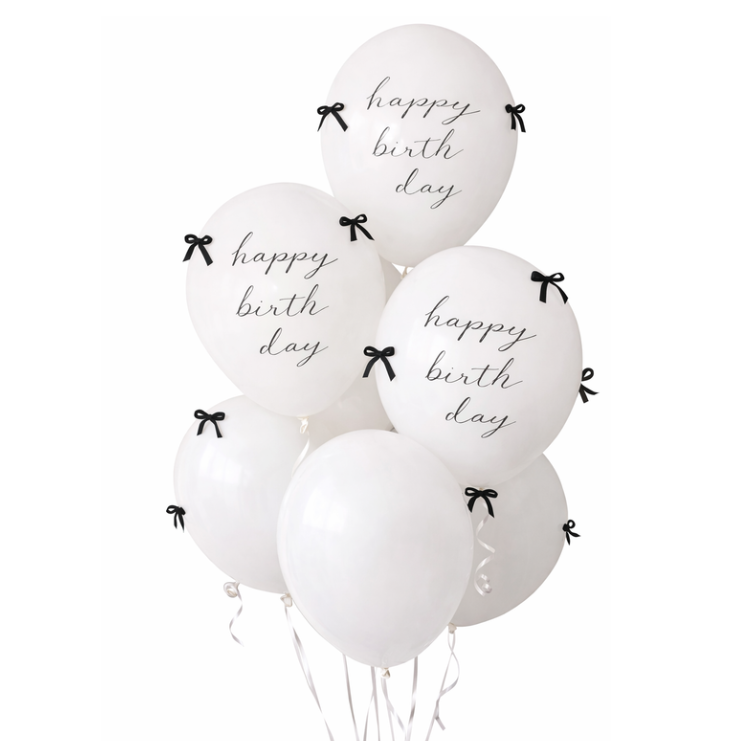 Balony Happy Birthday 10 szt. + Kokardki Czarne + Klej
