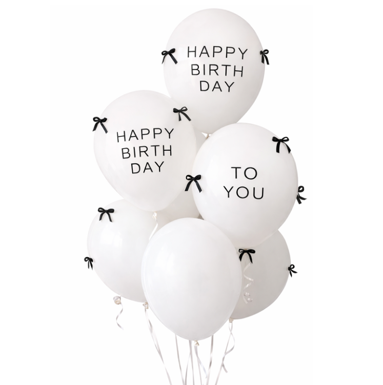Balony Happy Birthday To You 10 szt. + Kokardki Czarne + Klej