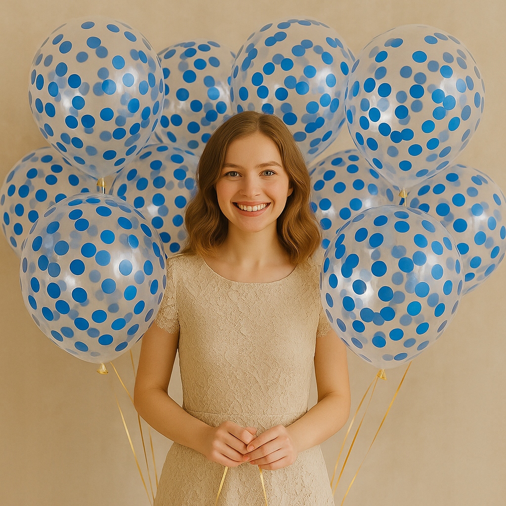Balony z Niebieskim Konfetti Transparentne Przezroczyste Urodziny 10 szt