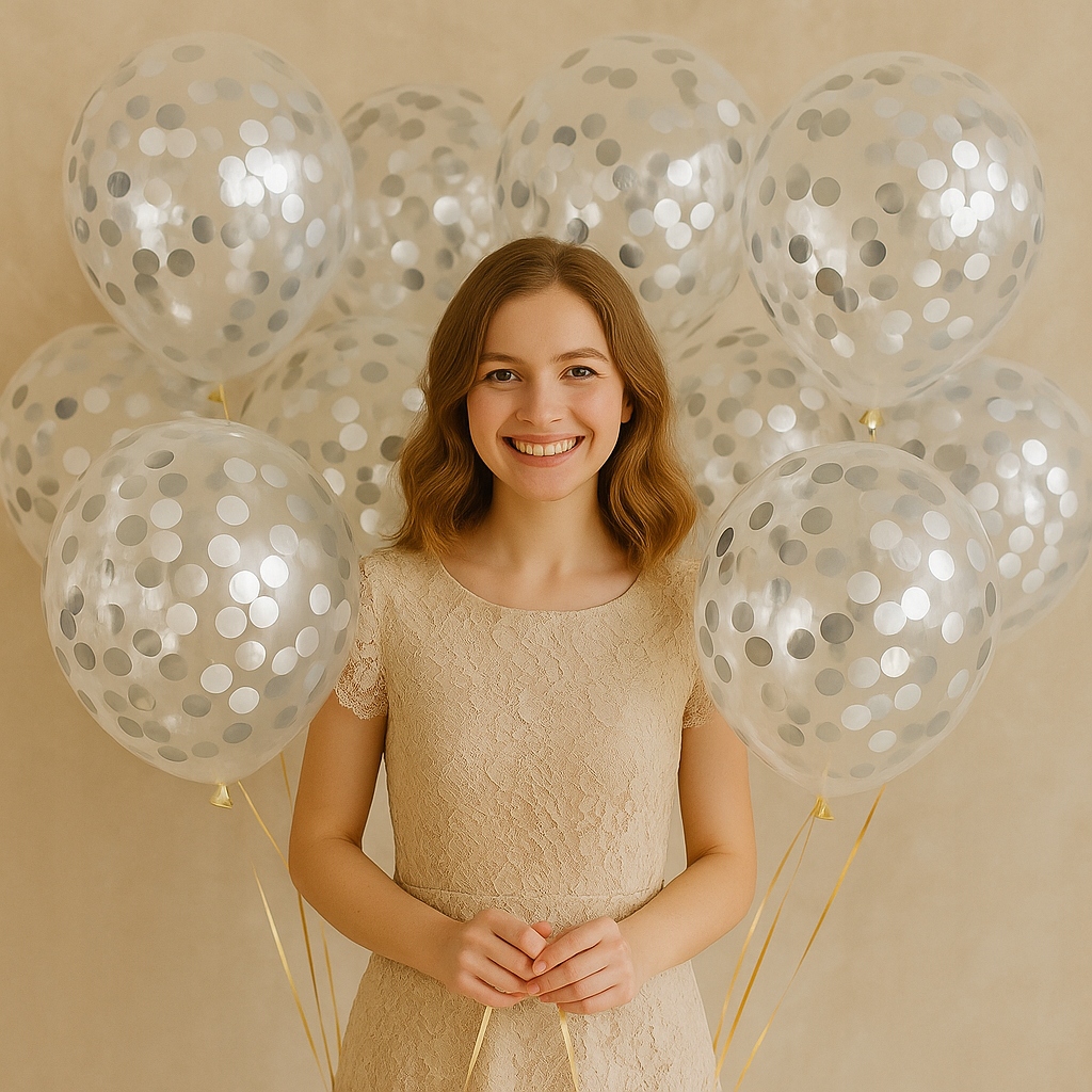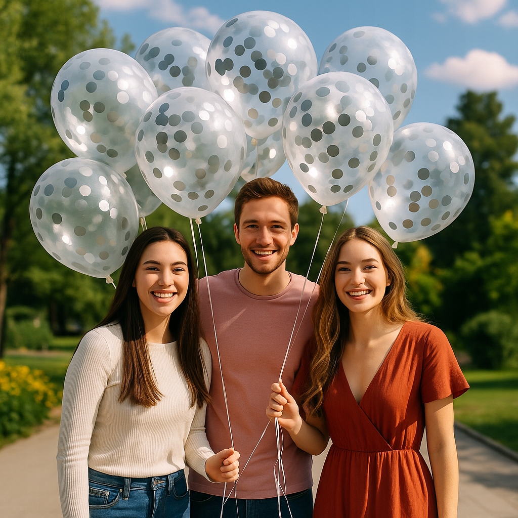 Balony ze Srebrnym Konfetti Transparentne Przezroczyste Urodziny 10 szt