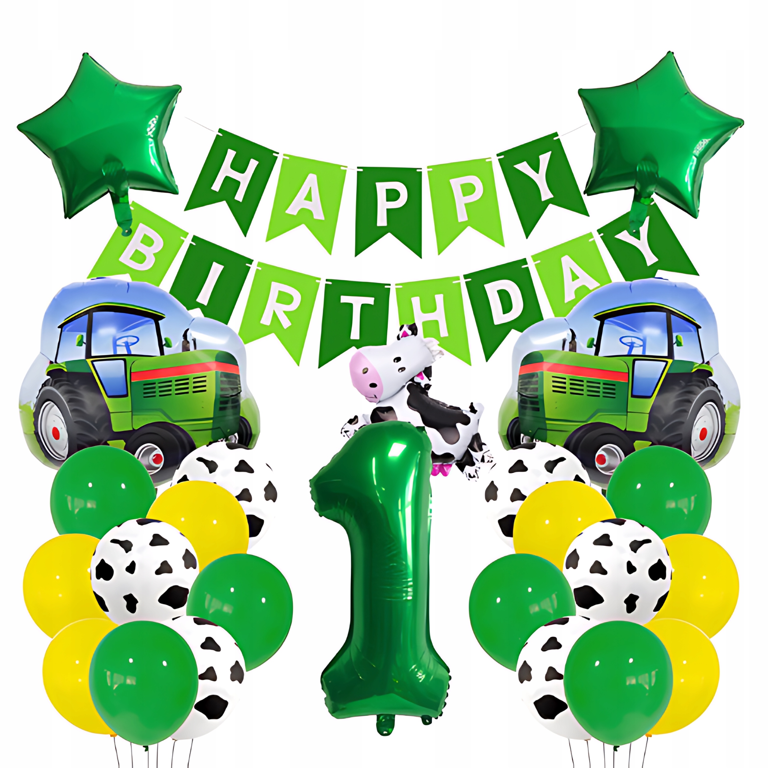 BALONY ZESTAW CYFRA 1 FARMA TRAKTOR CIĄGNIK KROWA URODZINY ROCZEK DEKORACJE