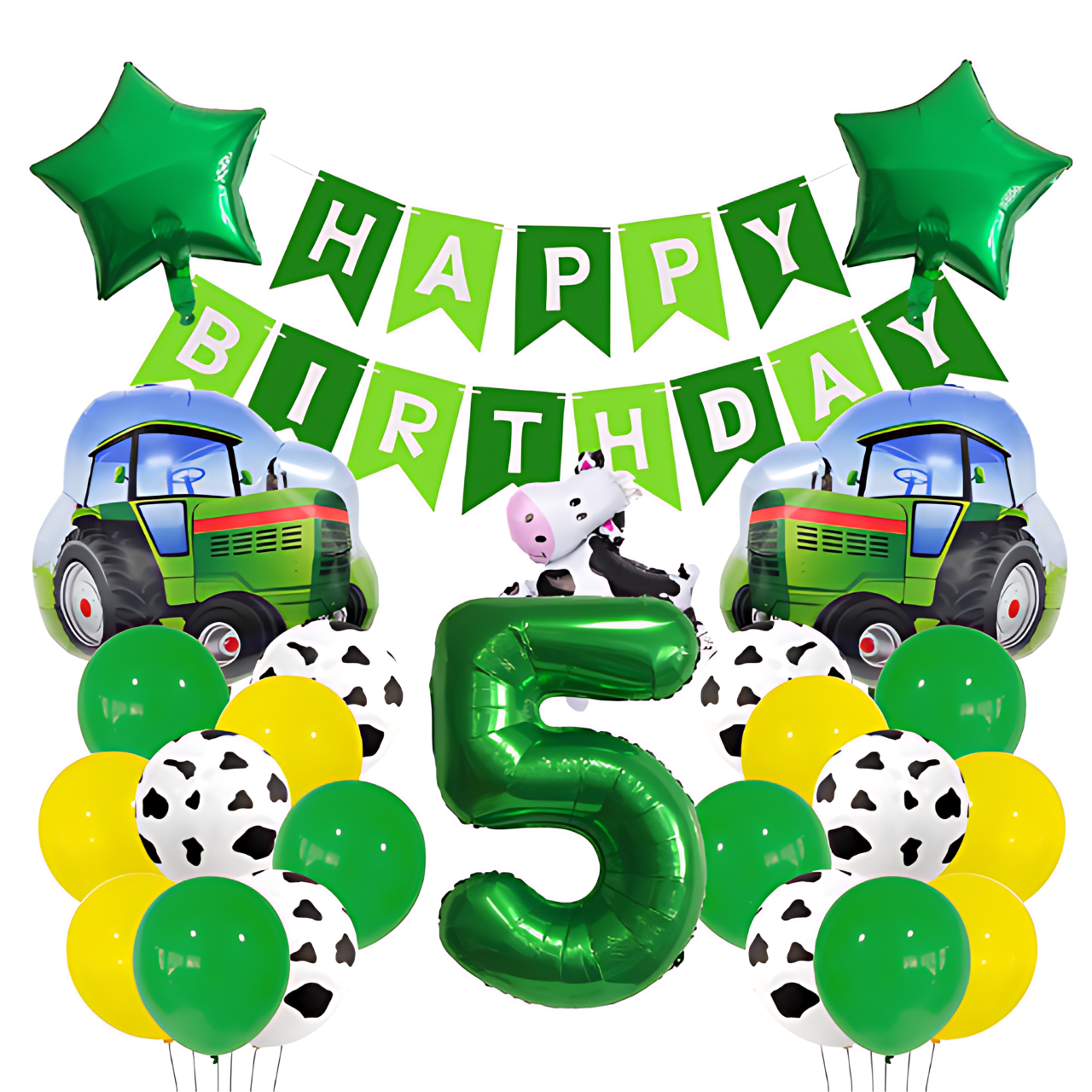 ✅Zorganizuj niezapomniane urodziny z motywem farmy! Ten kolorowy zestaw balonów z cyfrą 5, traktorem, krową i elementami farmerskimi to strzał w dziesiątkę na 5. urodziny małego miłośnika zwierząt i maszyn rolniczych