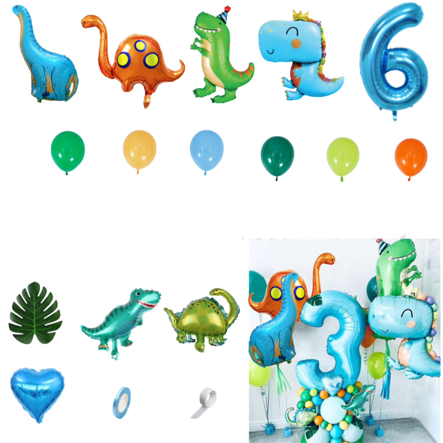 ✨ZESTAW BALONÓW DINOZAURY + CYFRA 6 – IDEALNA DEKORACJA NA URODZINY!