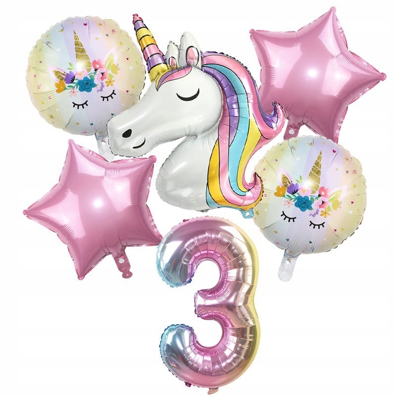 BALONY ZESTAW UNICORN JEDNOROŻEC URODZINY CYFRA 3