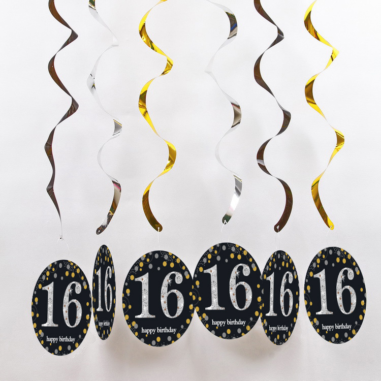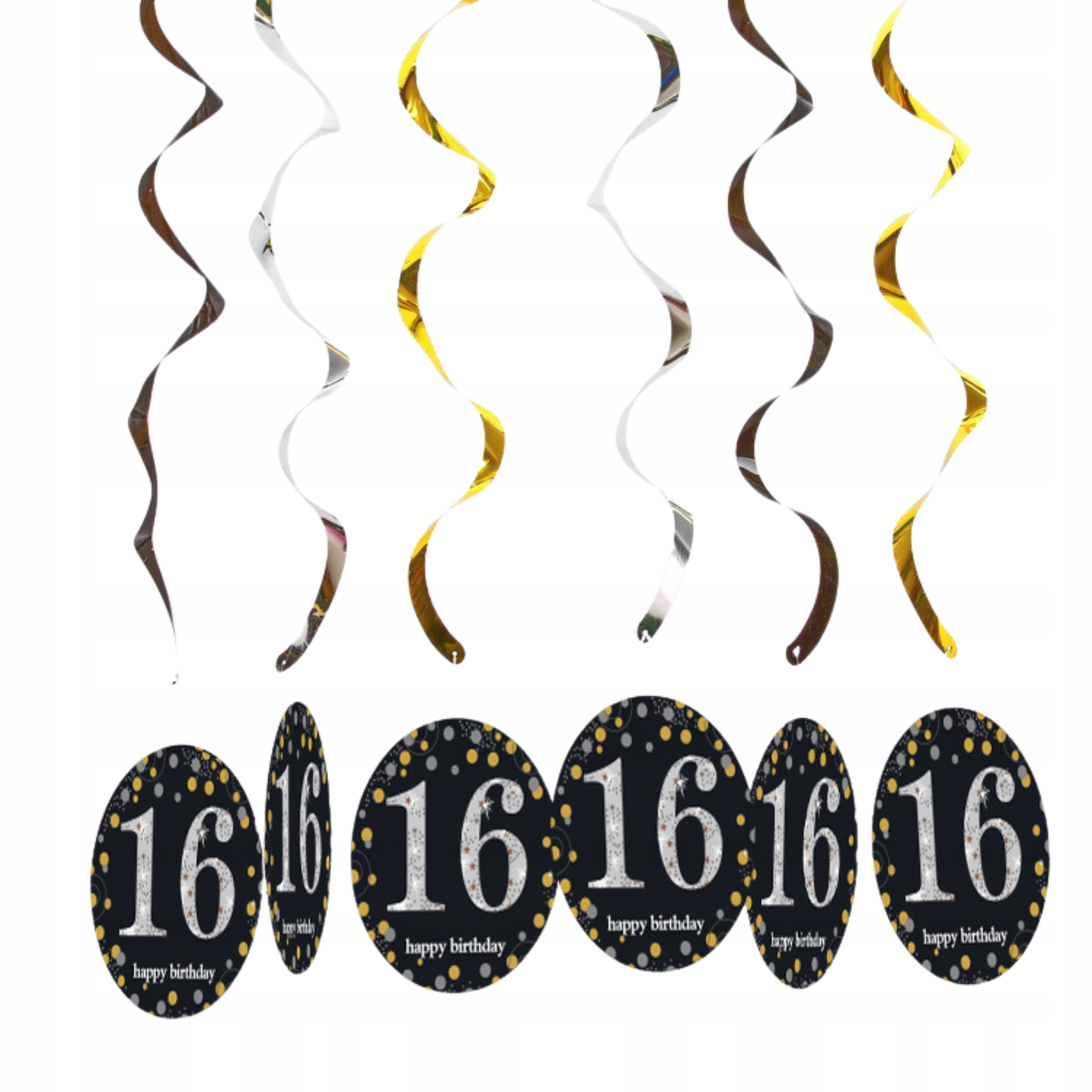 ŚWIDERKI wiszące ZŁOTE DEKORACJA na 16 URODZINY przyjęcie urodzinowe x6
