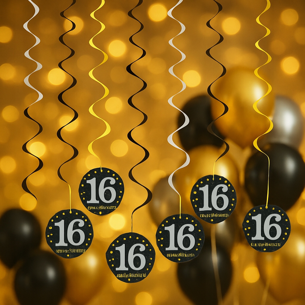 ✔️ Stylowa kolorystyka: złoto i czerń – idealna na eleganckie 16. urodziny