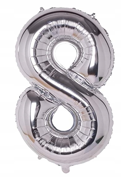 BALON FOLIOWY DUŻA CYFRA 8 SREBRNA SILVER 100 cm URODZINY DEKORACJA