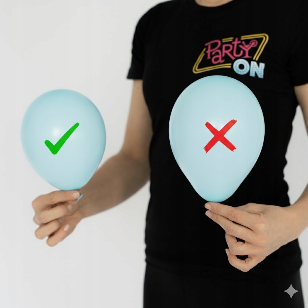 - Punkty Centralne: Napełnij balony Chłopiec, Stopa i Butelka powietrzem (pompką) lub helem i umieść je centralnie jako główną atrakcję obok baneru.