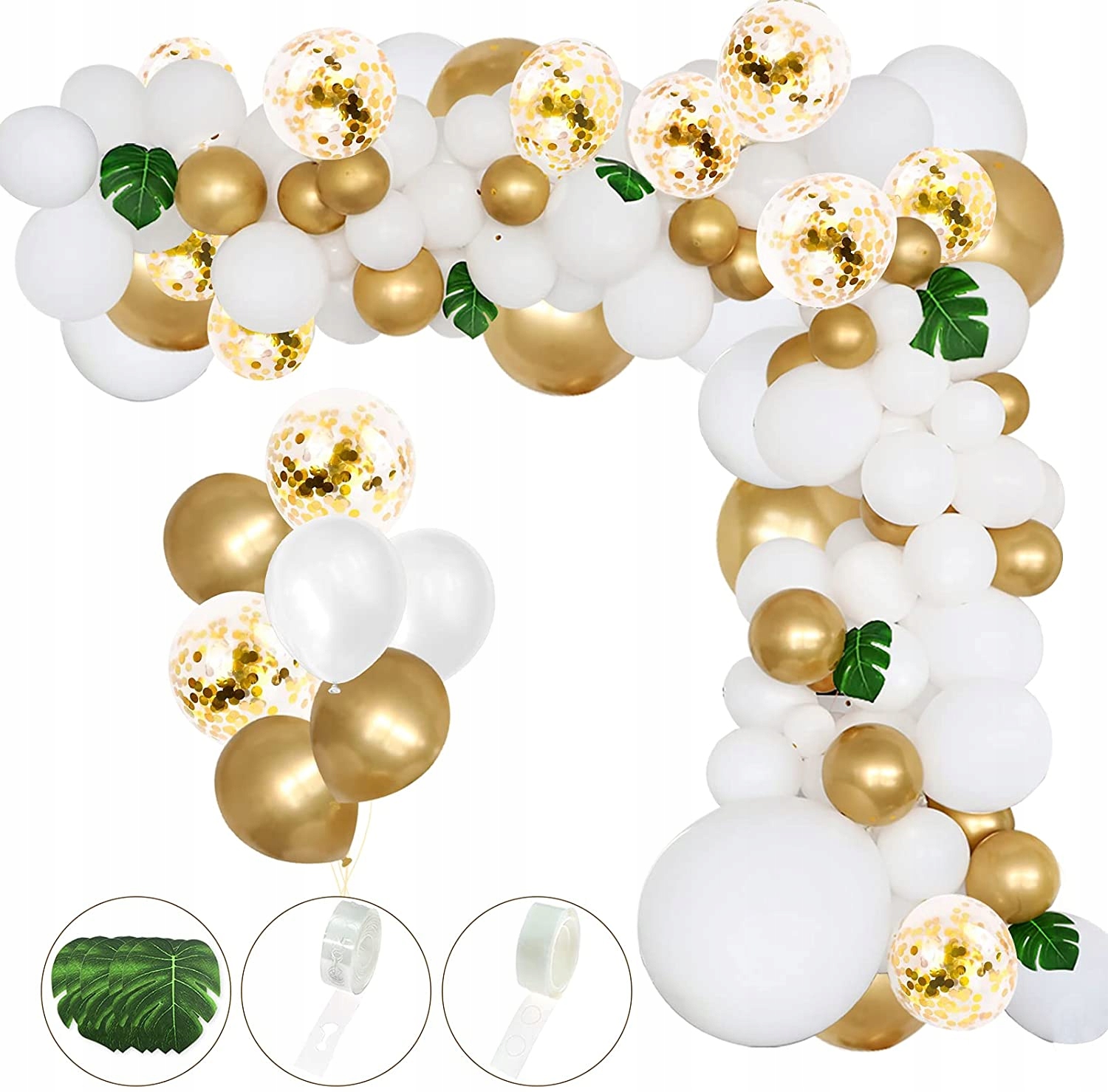 Balony na Urodziny Białe Złote Roczek GIRLANDA BALONOWA Ścianka ZESTAW Łuk