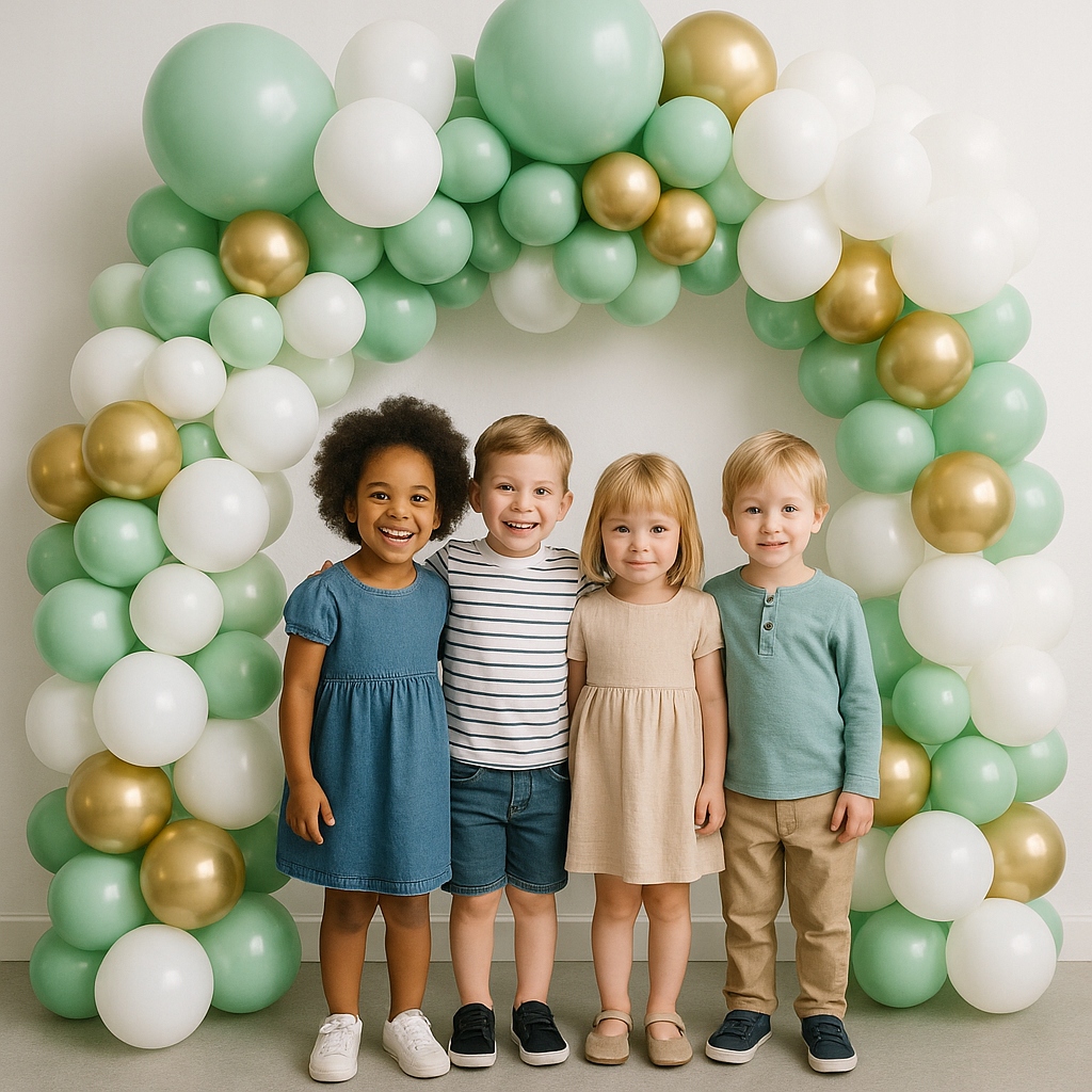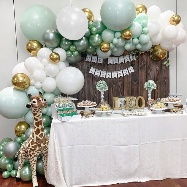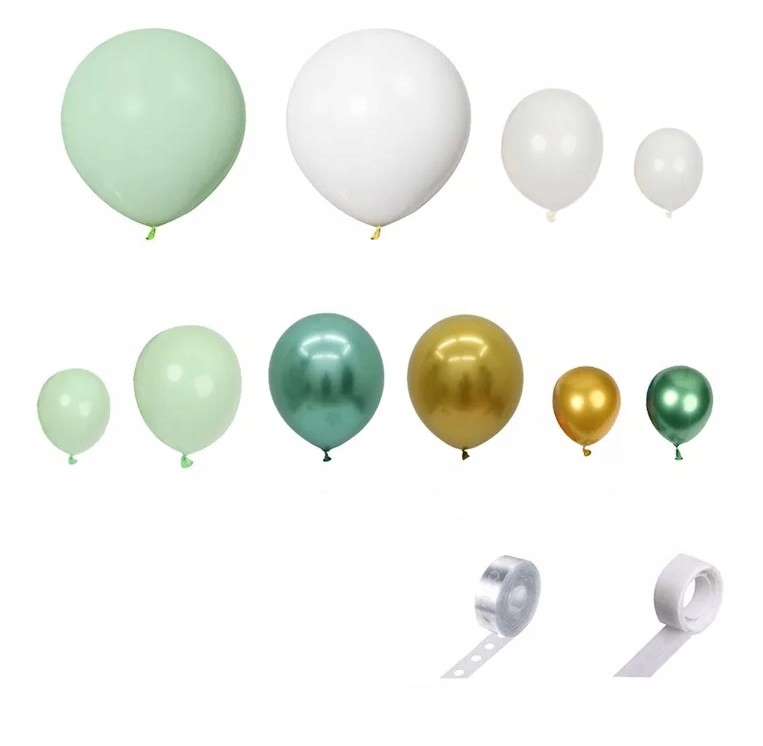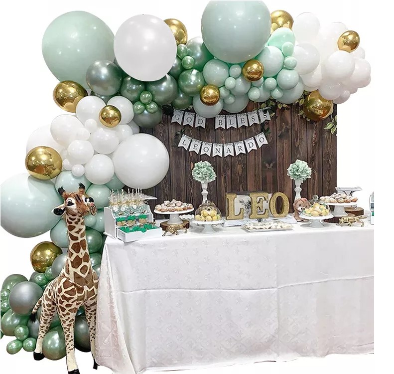 ✔️ Elegancka kolorystyka – Połączenie białych, złotych i zielonych balonów idealne na różne okazje – od urodzin, przez imprezy tematyczne po festyny, imprezy karnawałowe, roczki i chrzty.