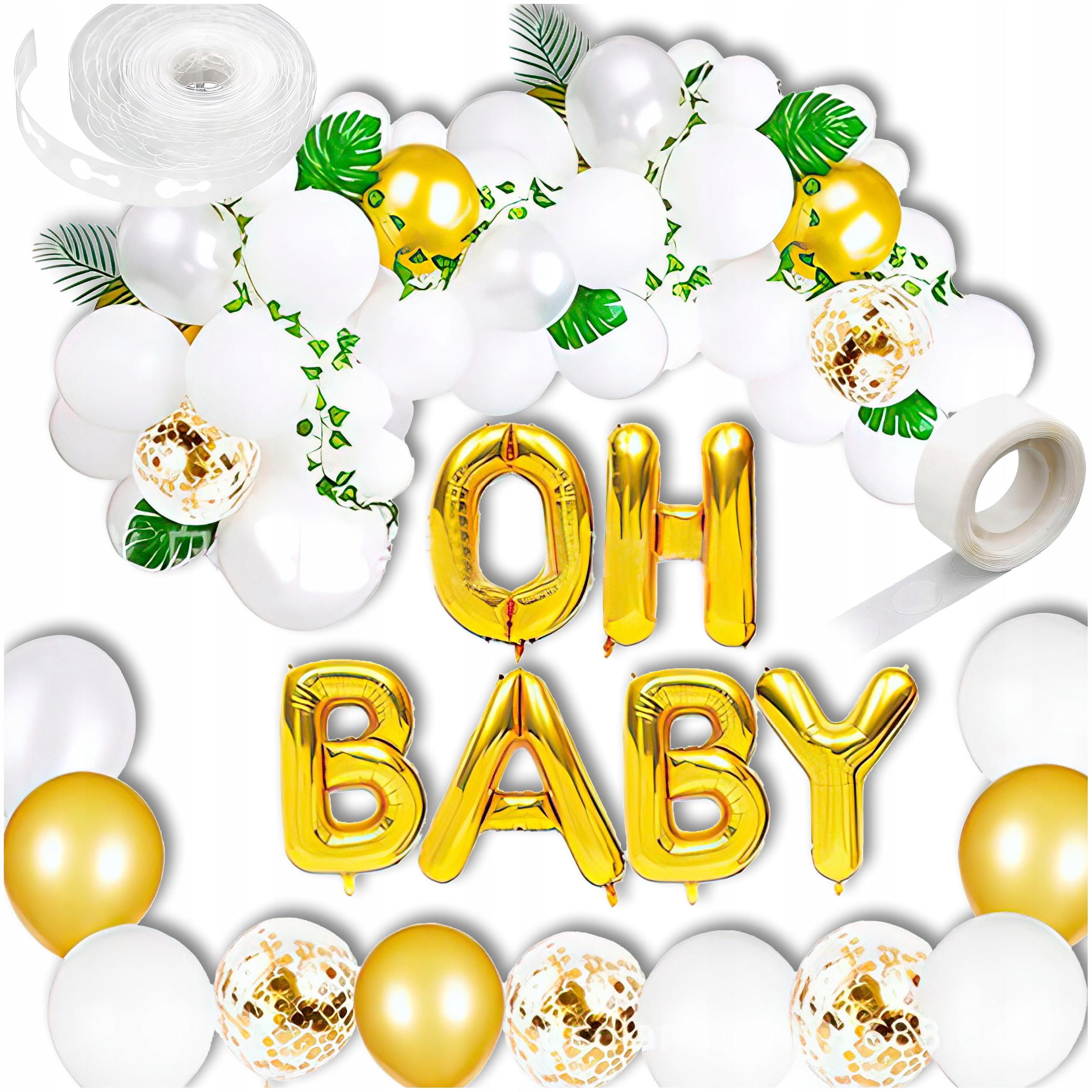BABY SHOWER BALONY na Narodziny GIRLANDA Balonowa Złota Biała Napis ZESTAW