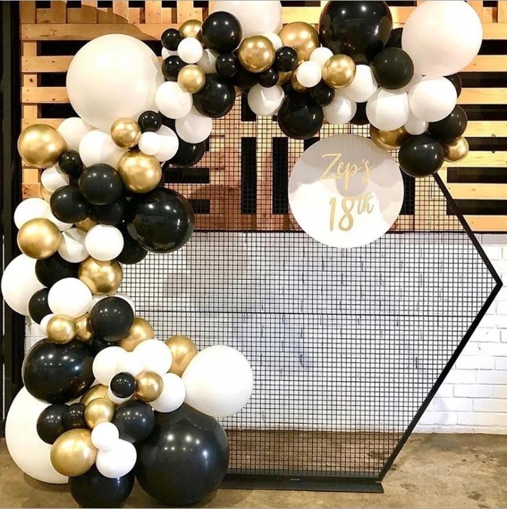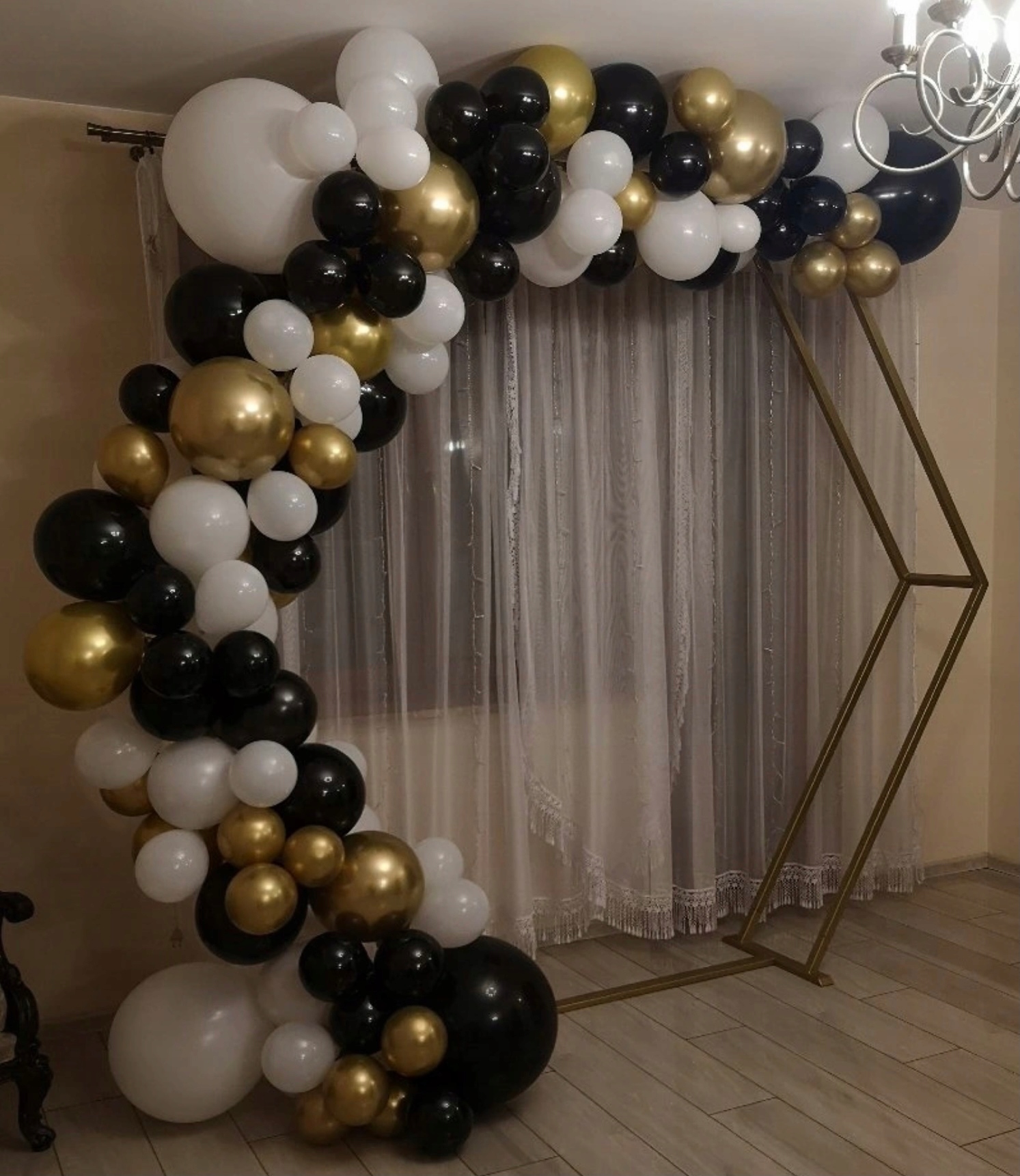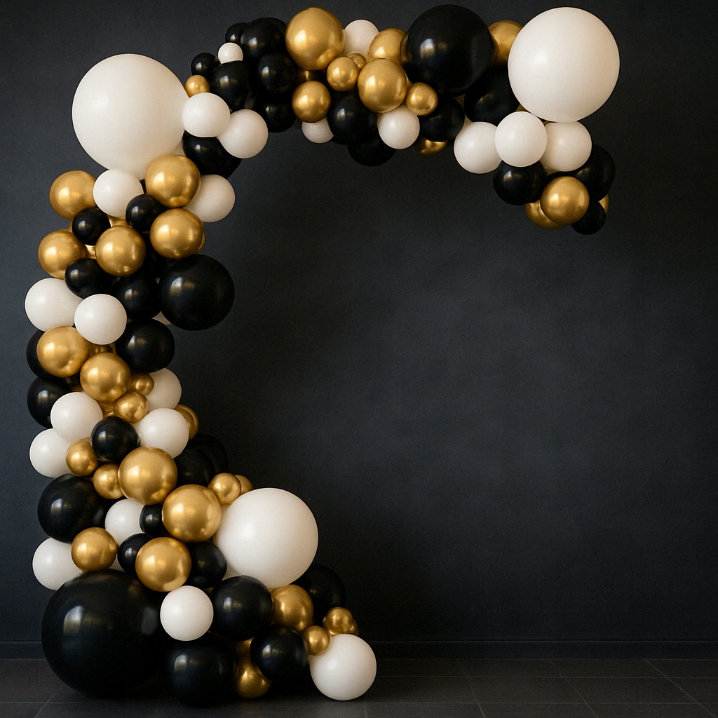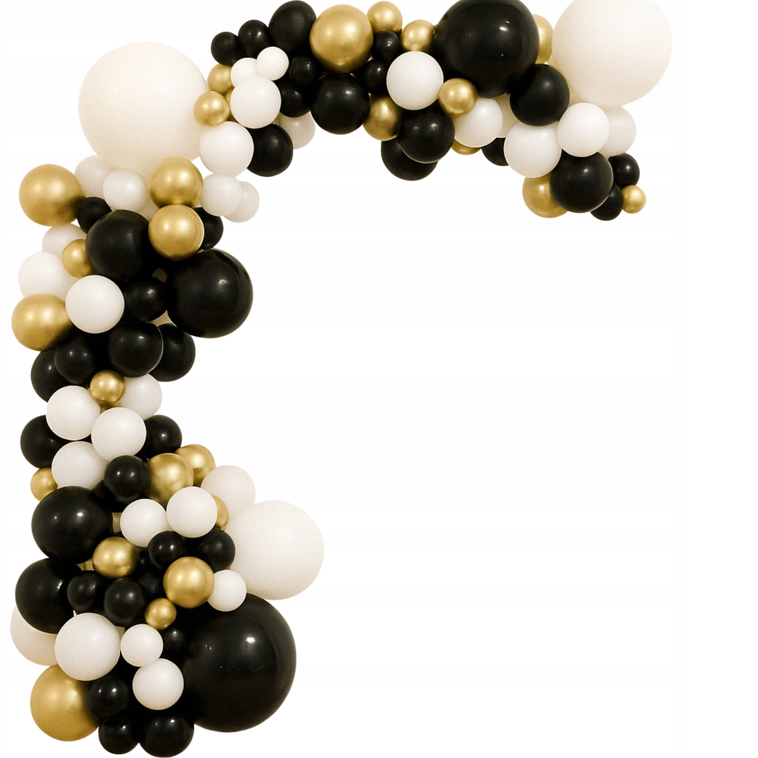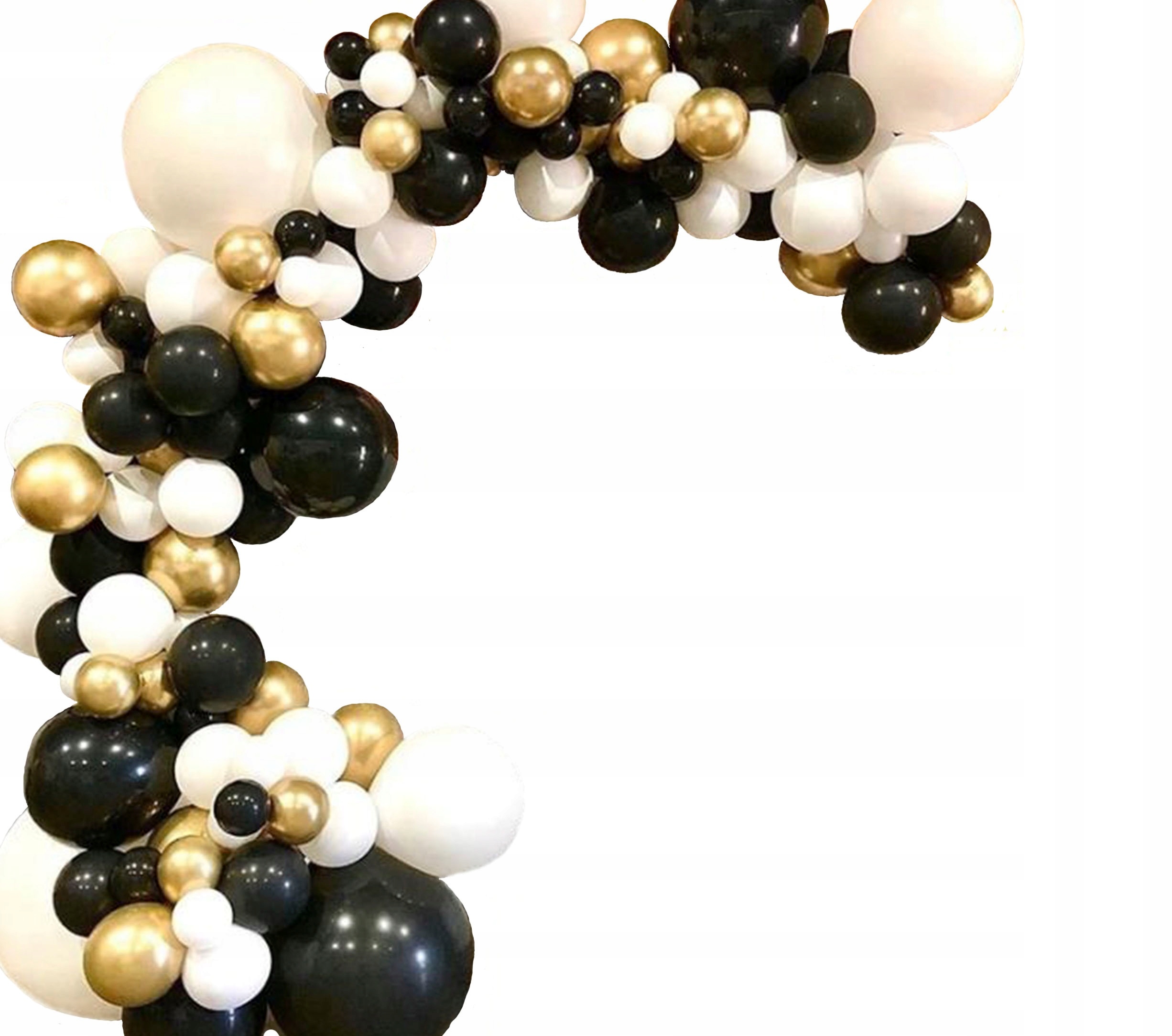 ✔️ Elegancka kolorystyka – Połączenie czarnych, białych i złotych balonów idealne na różne okazje – od urodzin, przez imprezy tematyczne po festyny, imprezy karnawałowe.