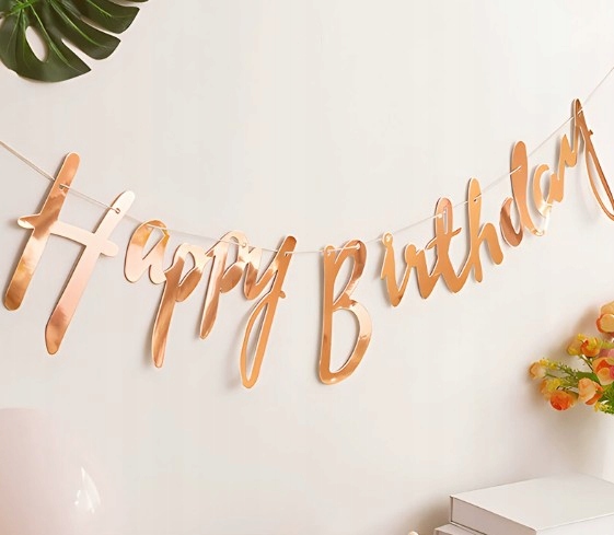 ✅ Nasz baner „Happy Birthday” w odcieniu rose gold to idealny wybór dla każdego, kto chce stworzyć niezapomnianą atmosferę podczas urodzin!