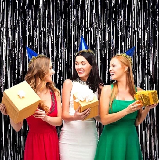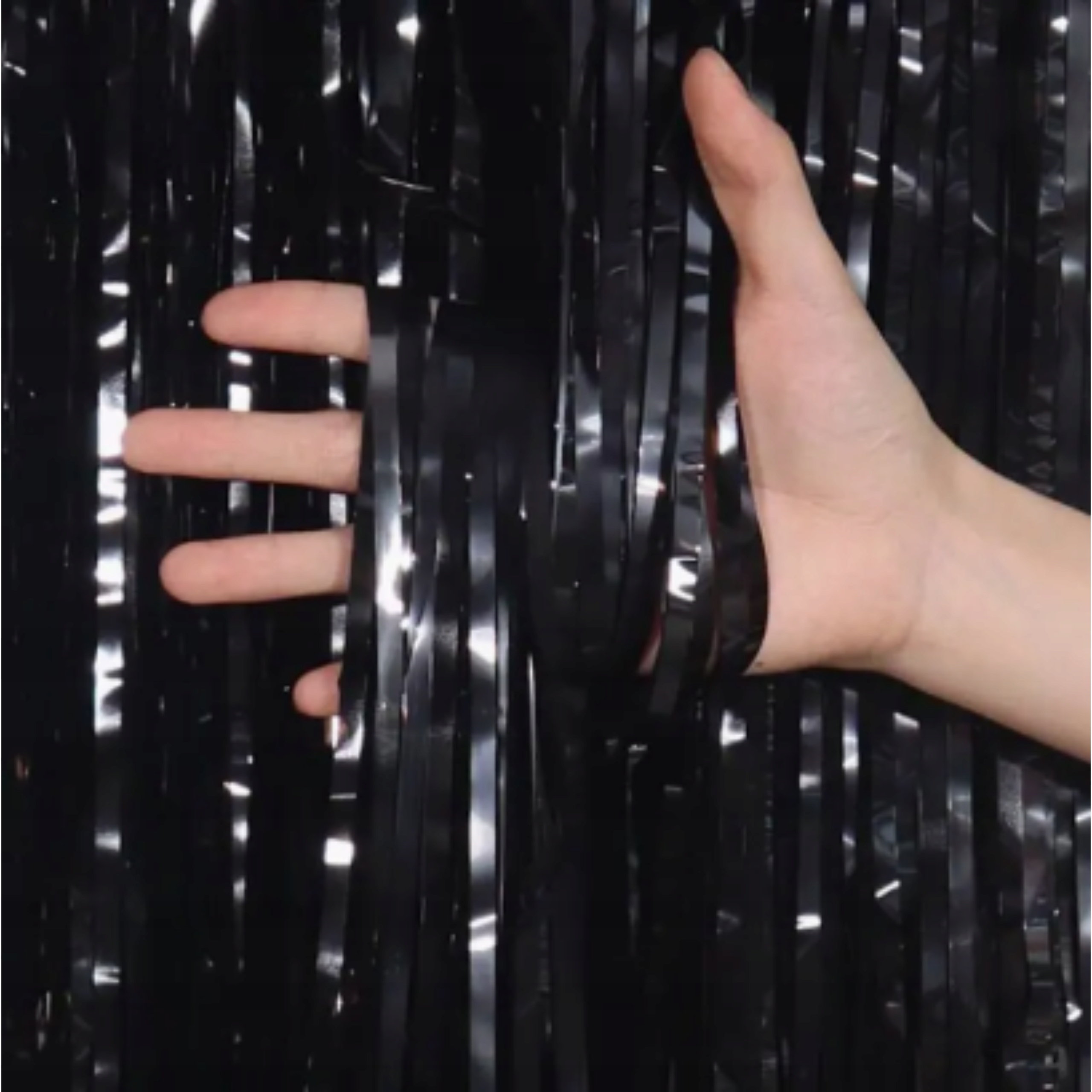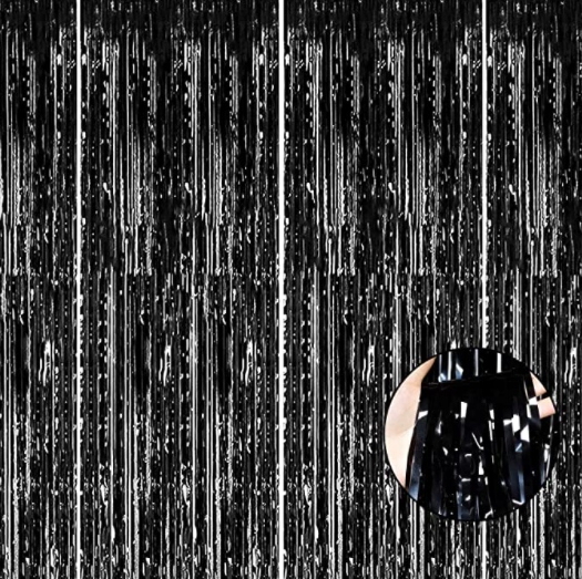 KURTYNA DEKORACYJNA CZARNA FOLIOWA ZASŁONA IMPREZOWA URODZINY PARTY