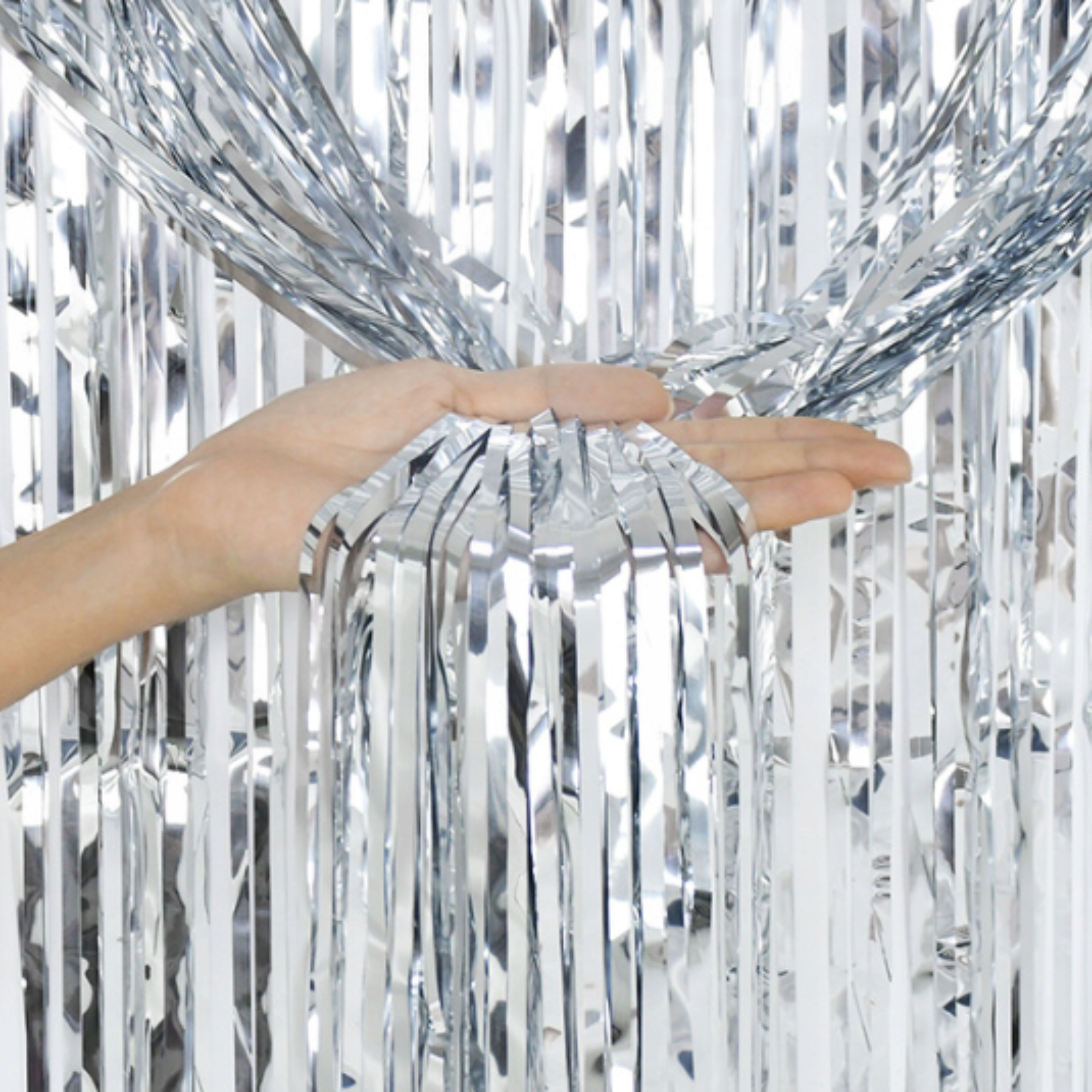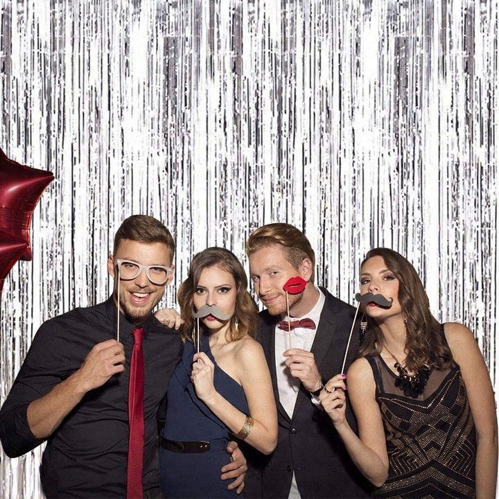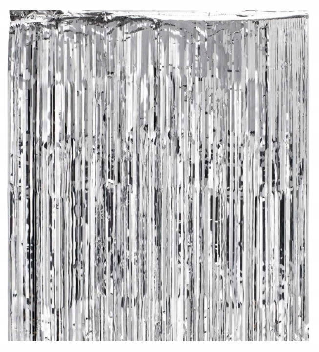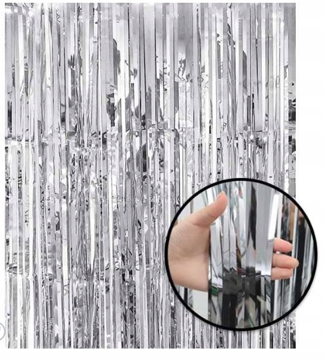 KURTYNA DEKORACYJNA SREBRNA METALICZNA FOLIOWA ZASŁONA IMPREZOWA URODZINY