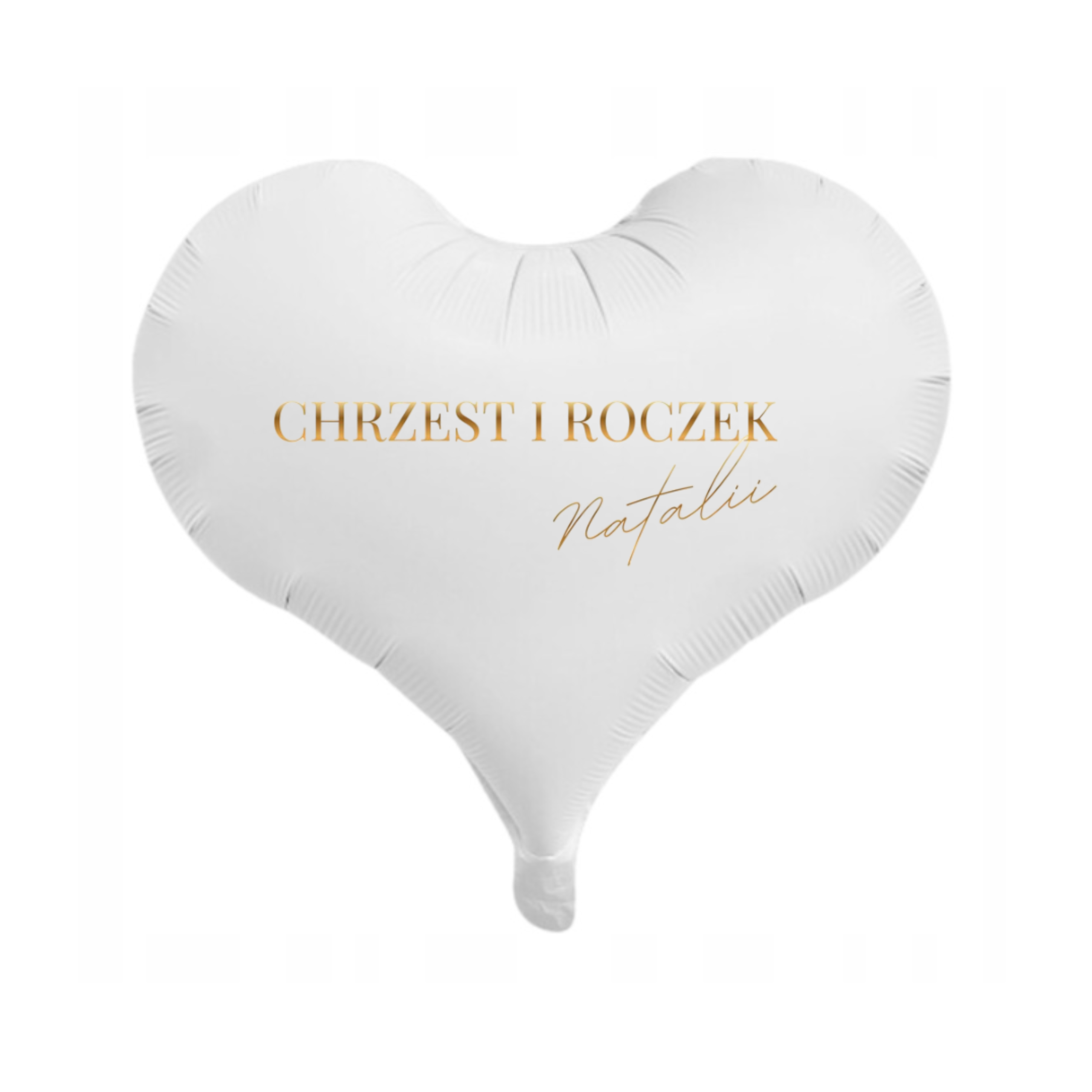 Naklejka personalizowana na chrzest i roczek + balon serce złamana biel