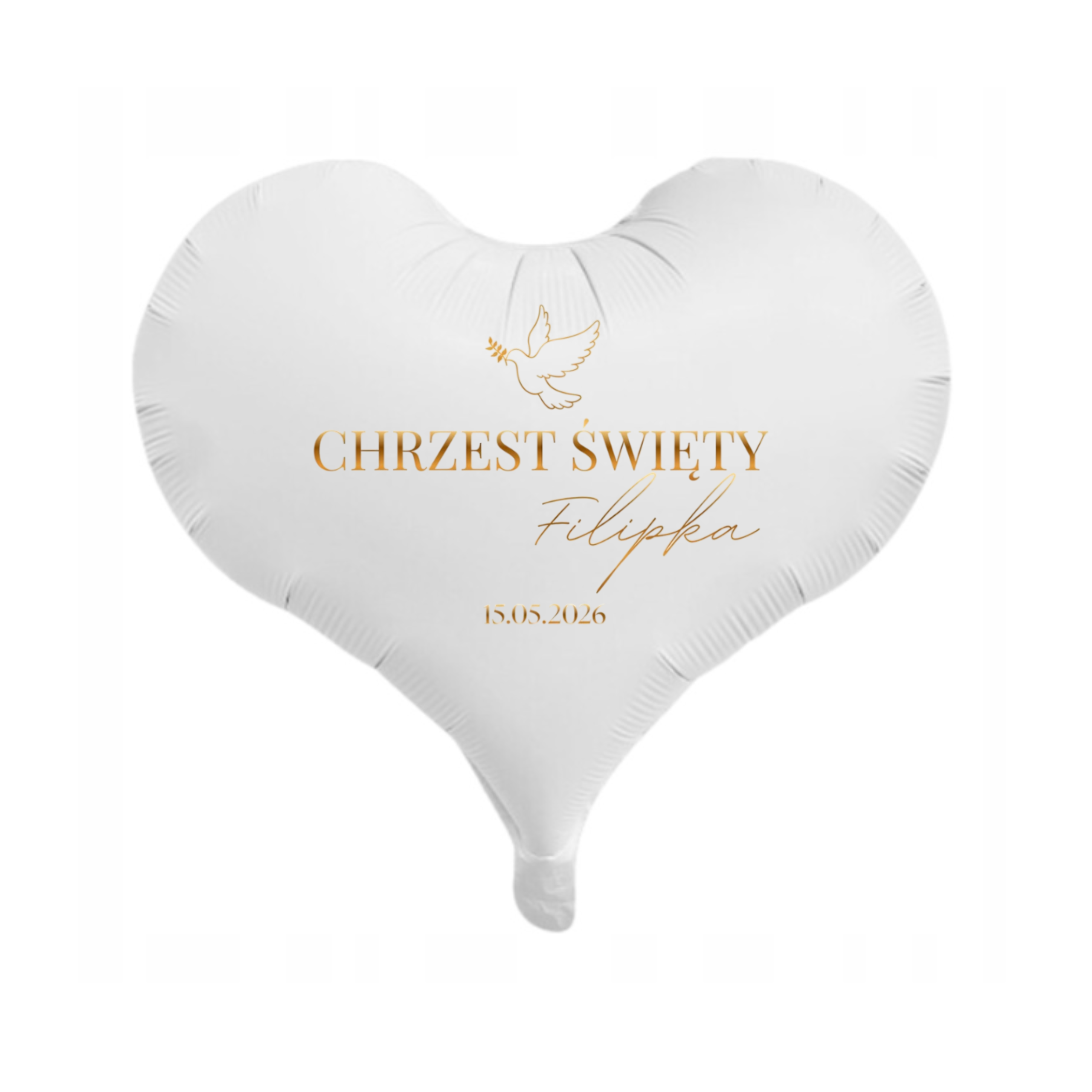 Naklejka personalizowana na chrzest + plus balon serce złamana biel