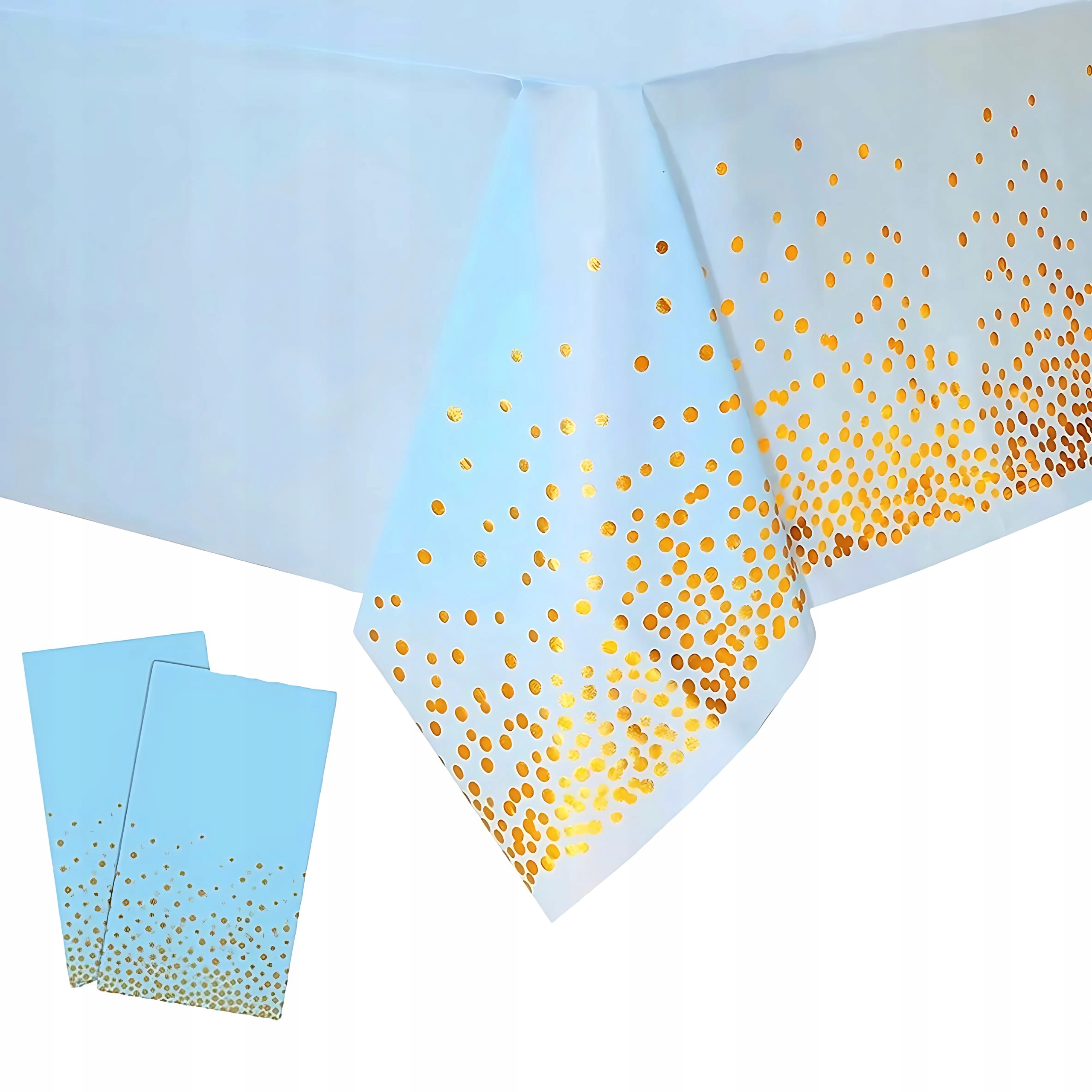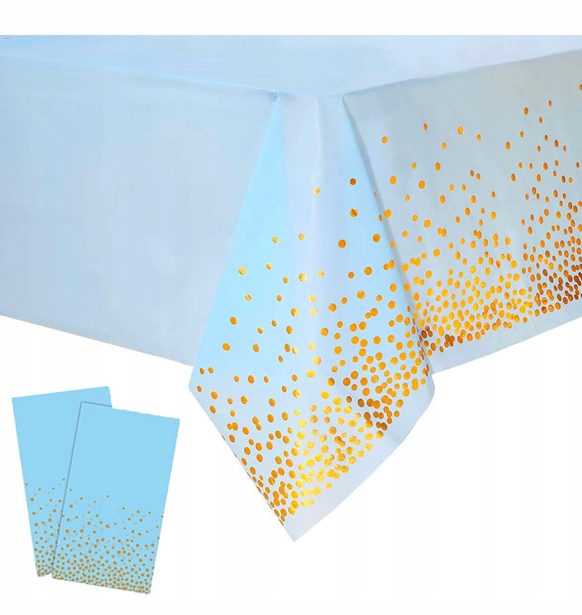 OBRUS PLASTIKOWY NIEBIESKI W ZŁOTE KROPKI URODZINY DEKORACJA PRZYJĘCIE PARTY