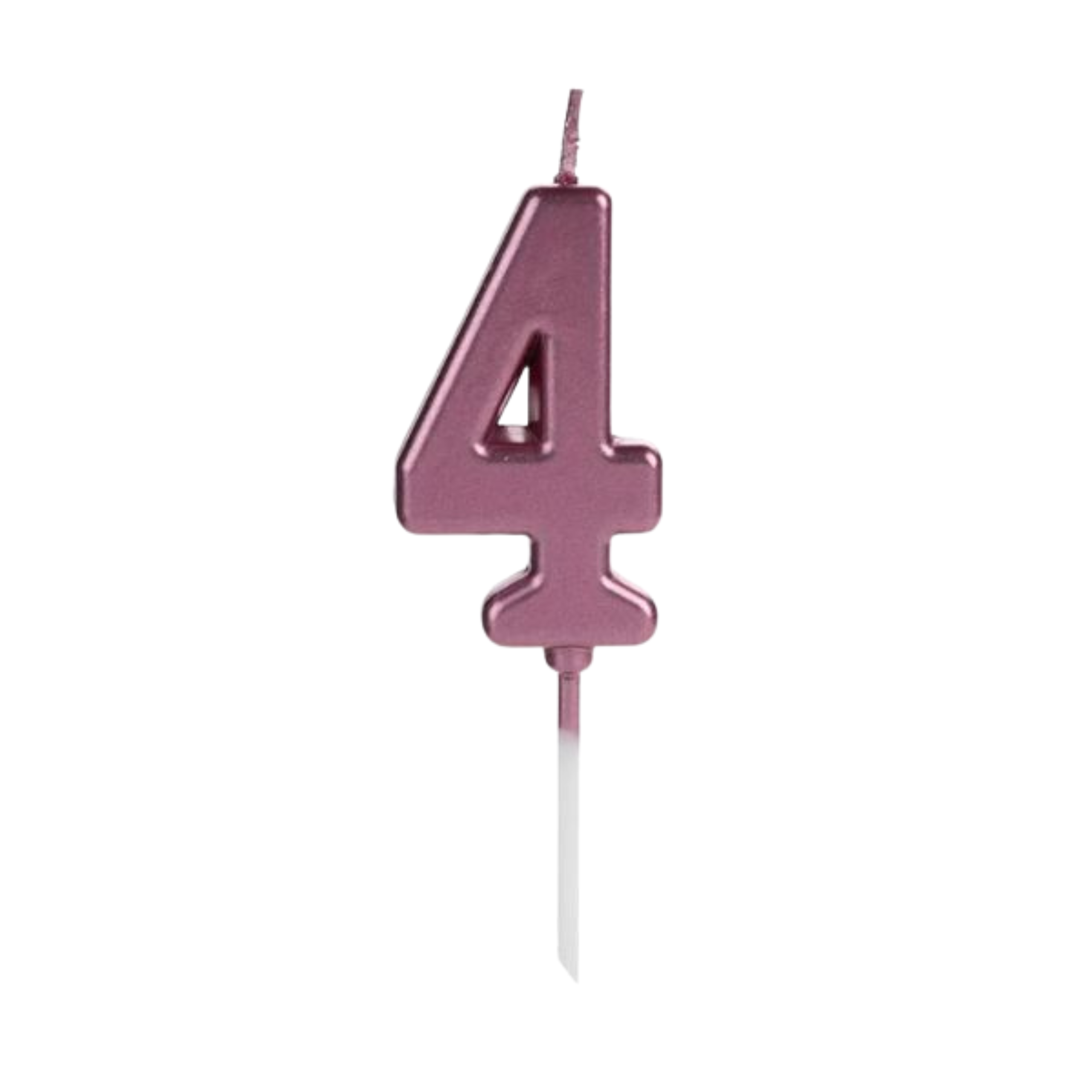 Świeczka Urodzinowa Cyfra 4 RÓŻOWE ZŁOTO na Tort Urodziny Metaliczna 9cm