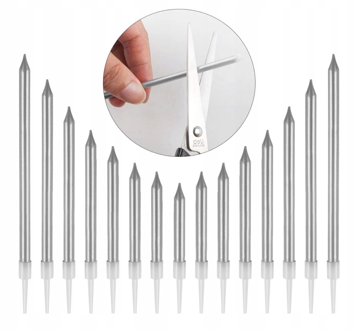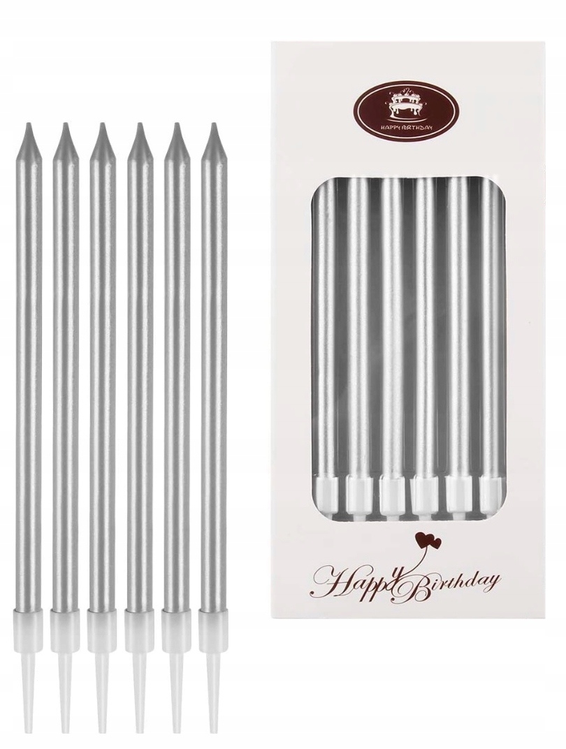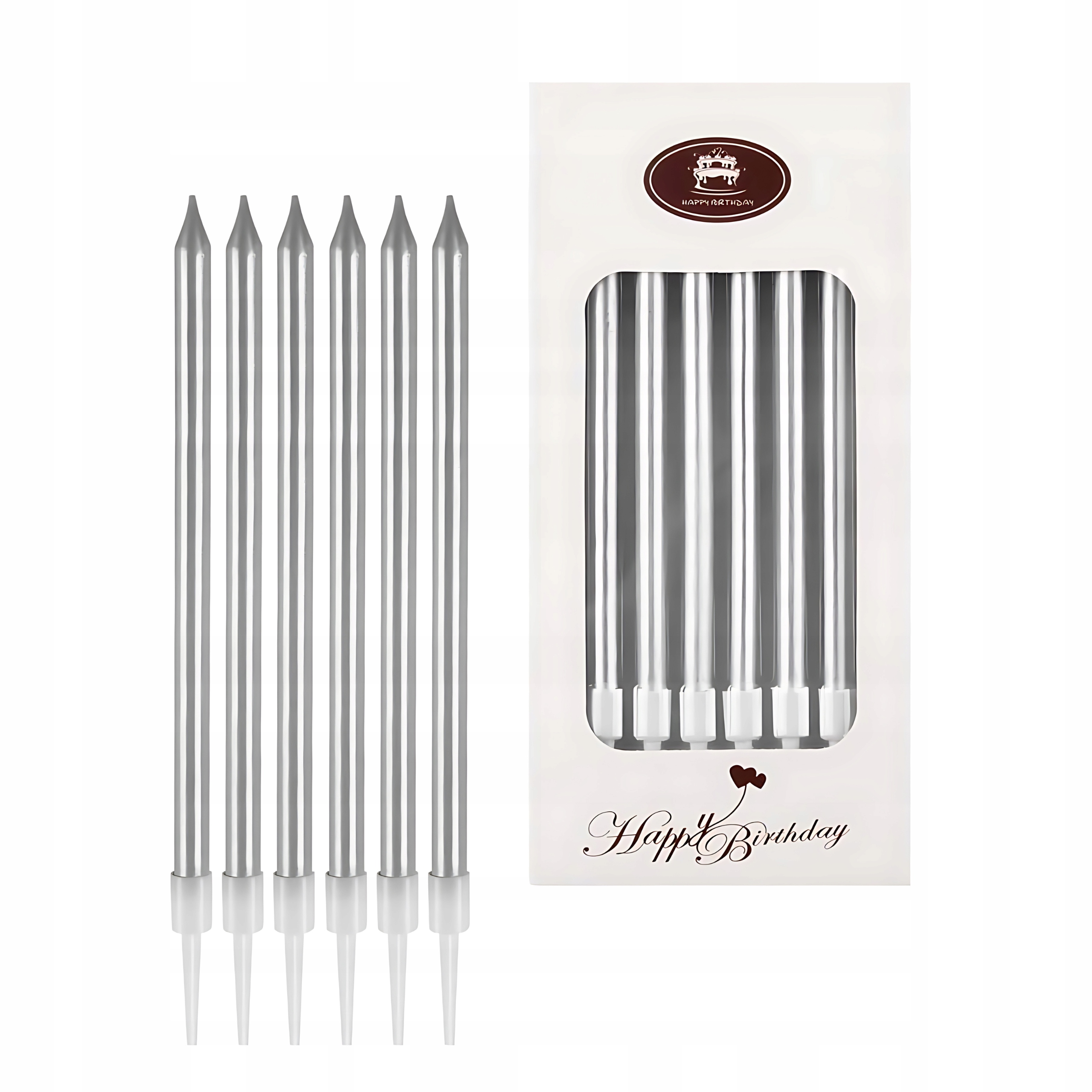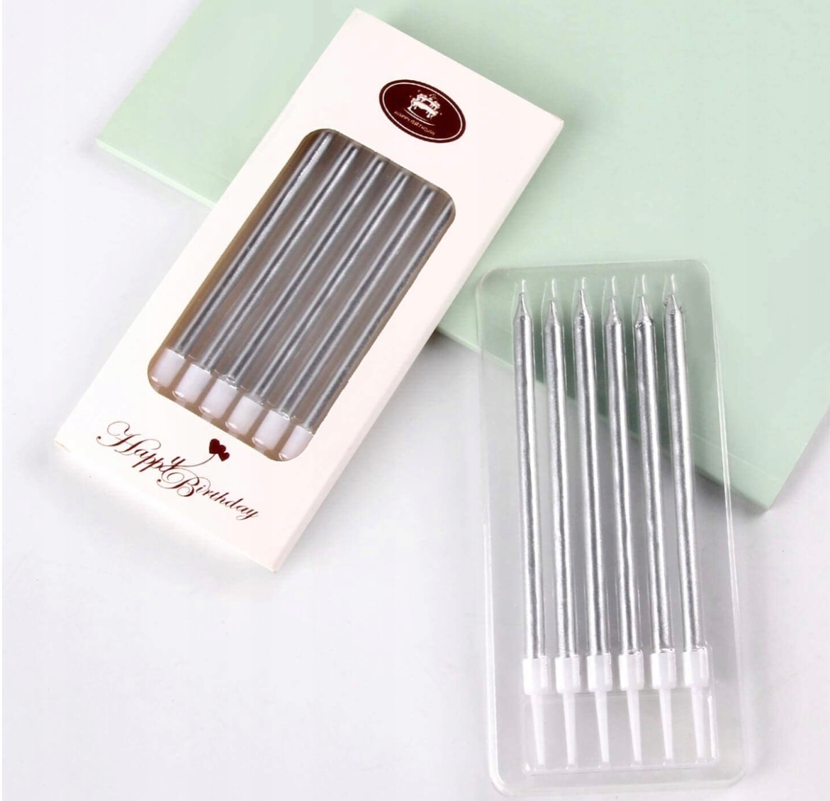 ŚWIECZKI URODZINOWE NA TORT SREBRNE 6 SZT URODZINY DEKORACJA PRZYJĘCIE