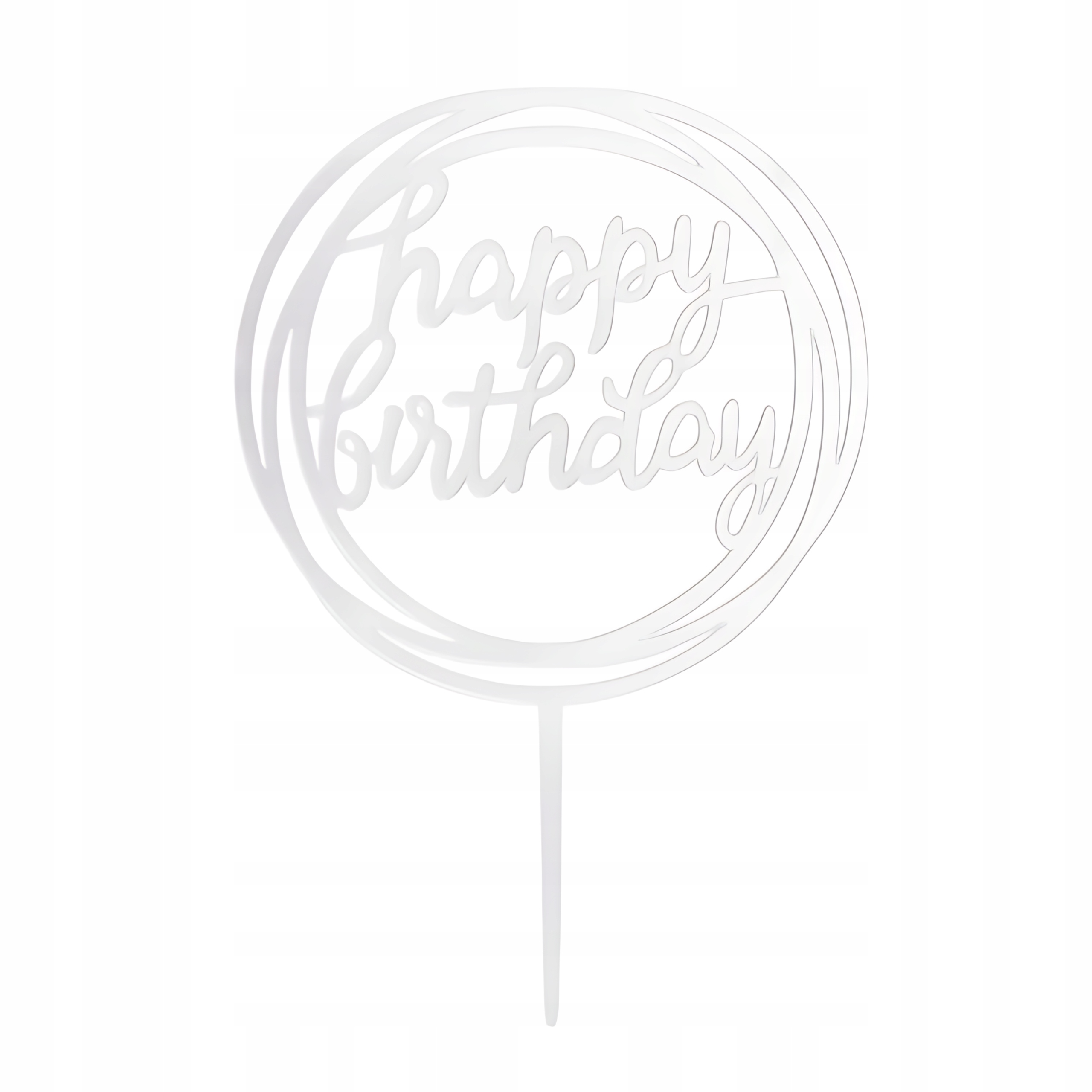 Topper na tort HAPPY BIRTHDAY SREBRNY OKRĄGŁY urodziny dekoracja party