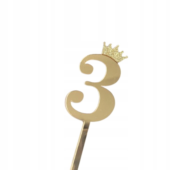 TOPPER DEKORACJA NA CIASTO TORT 3 ZŁOTA KORONA BROKAT URODZINY DEKORACJA