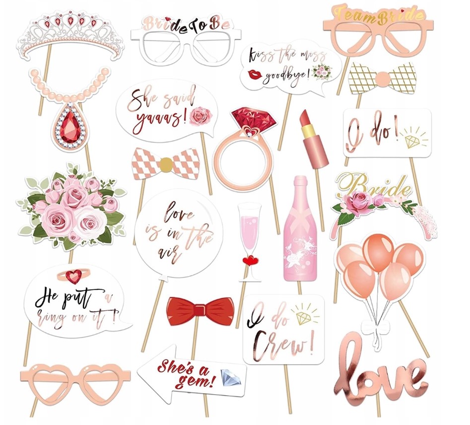 REKWIZYTY DO ZDJĘĆ WIECZÓR PANIEŃSKI BRIDE TO BE GADŻETY FOTOBUDKI ŚCIANKA