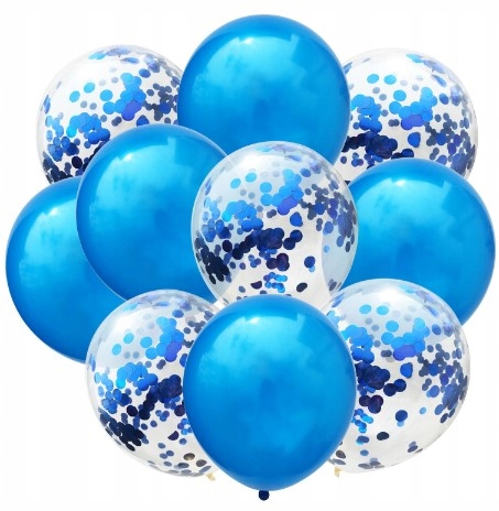 ✔️ Zestaw zawiera mix balonów niebieskich metalicznych/chrom oraz transparentnych z konfetti, zaprojektowany tak, aby stworzyć spójną i efektowną kompozycję.