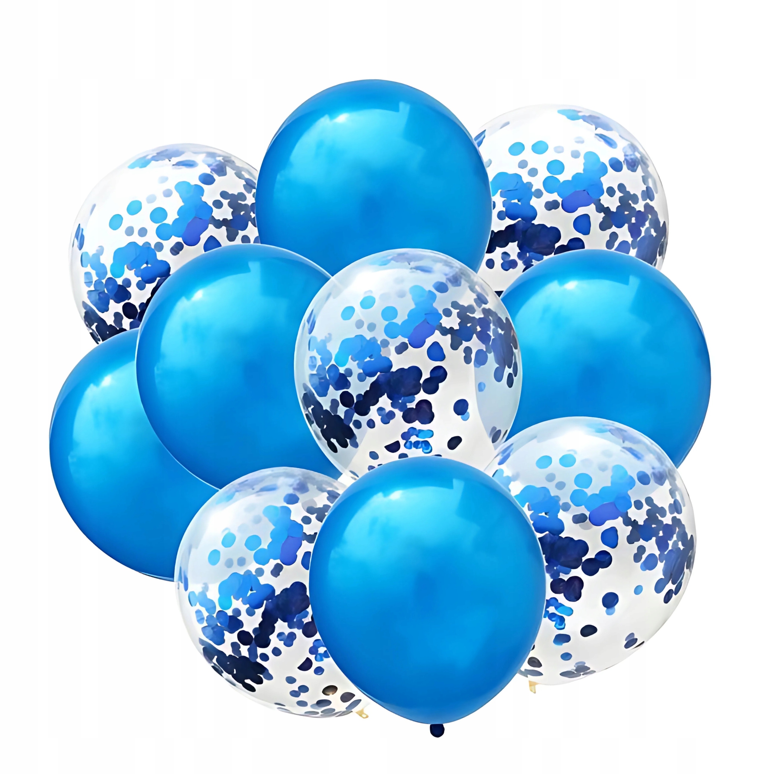 - 10 x Balony Lateksowe (Mix Niebieski Metaliczny/Chrom i Transparentny z Konfetti)