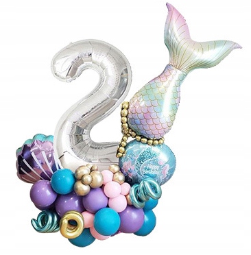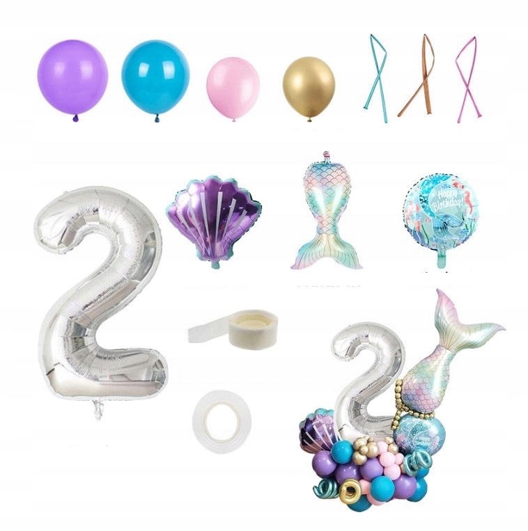 BALONY FOLIOWE KOLOROWE CYFRA 2 SYRENKA MORSKIE URODZINY DEKORACJA PARTY