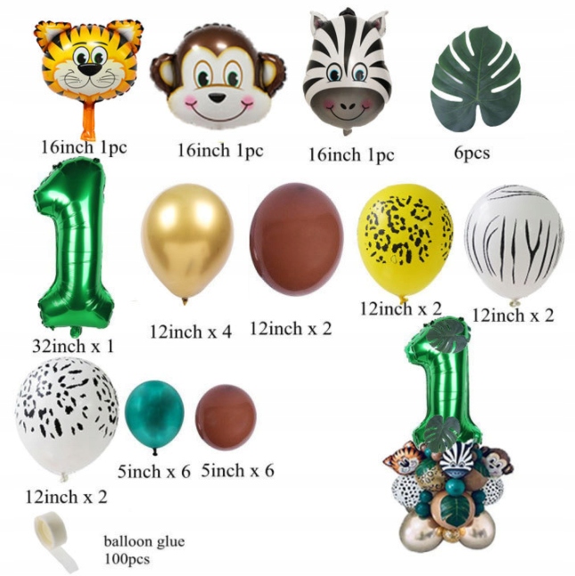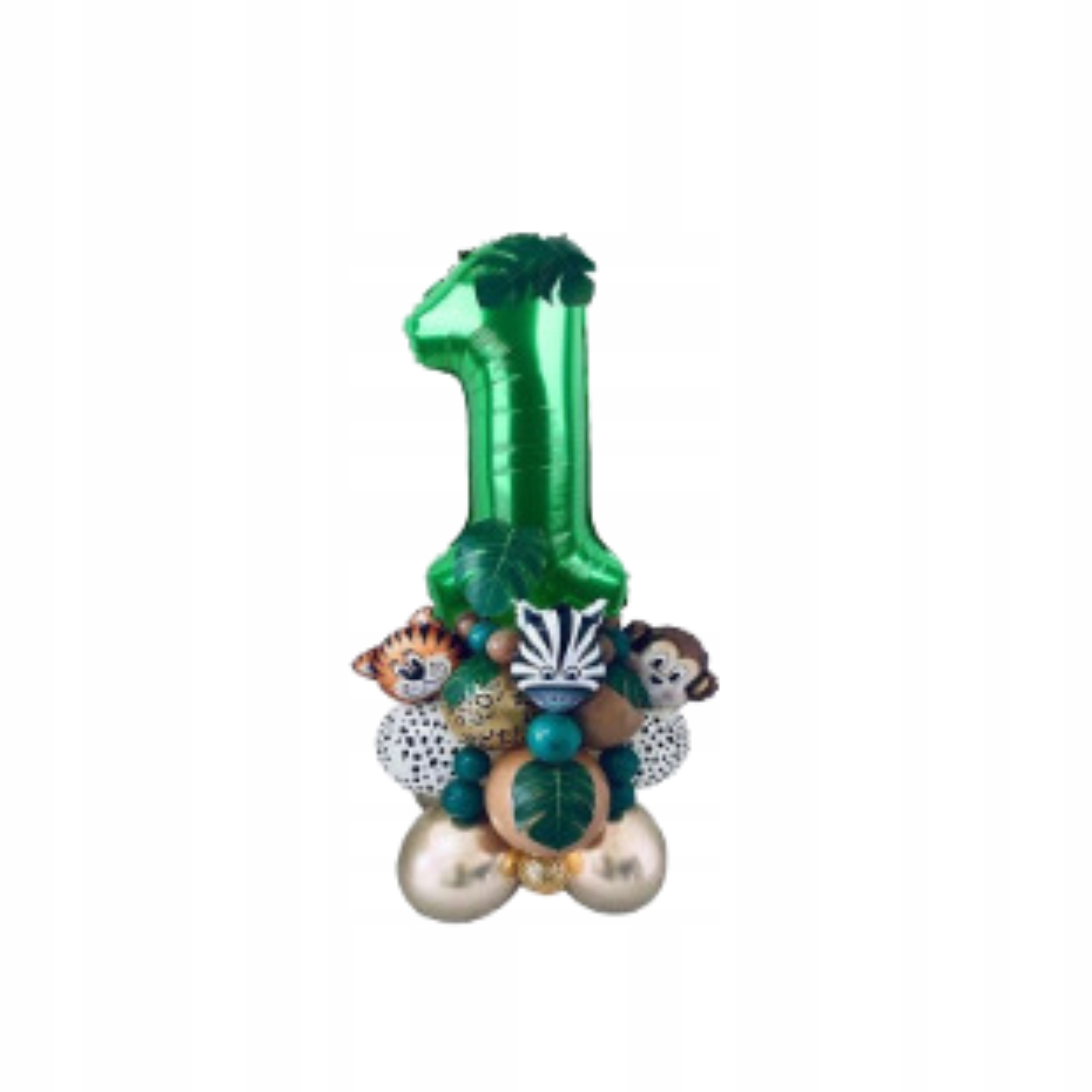 ✨ZESTAW BALONÓW ZOO + CYFRA 1 – ZIELONE ZWIERZĘTA NA URODZINY DZIECKA!