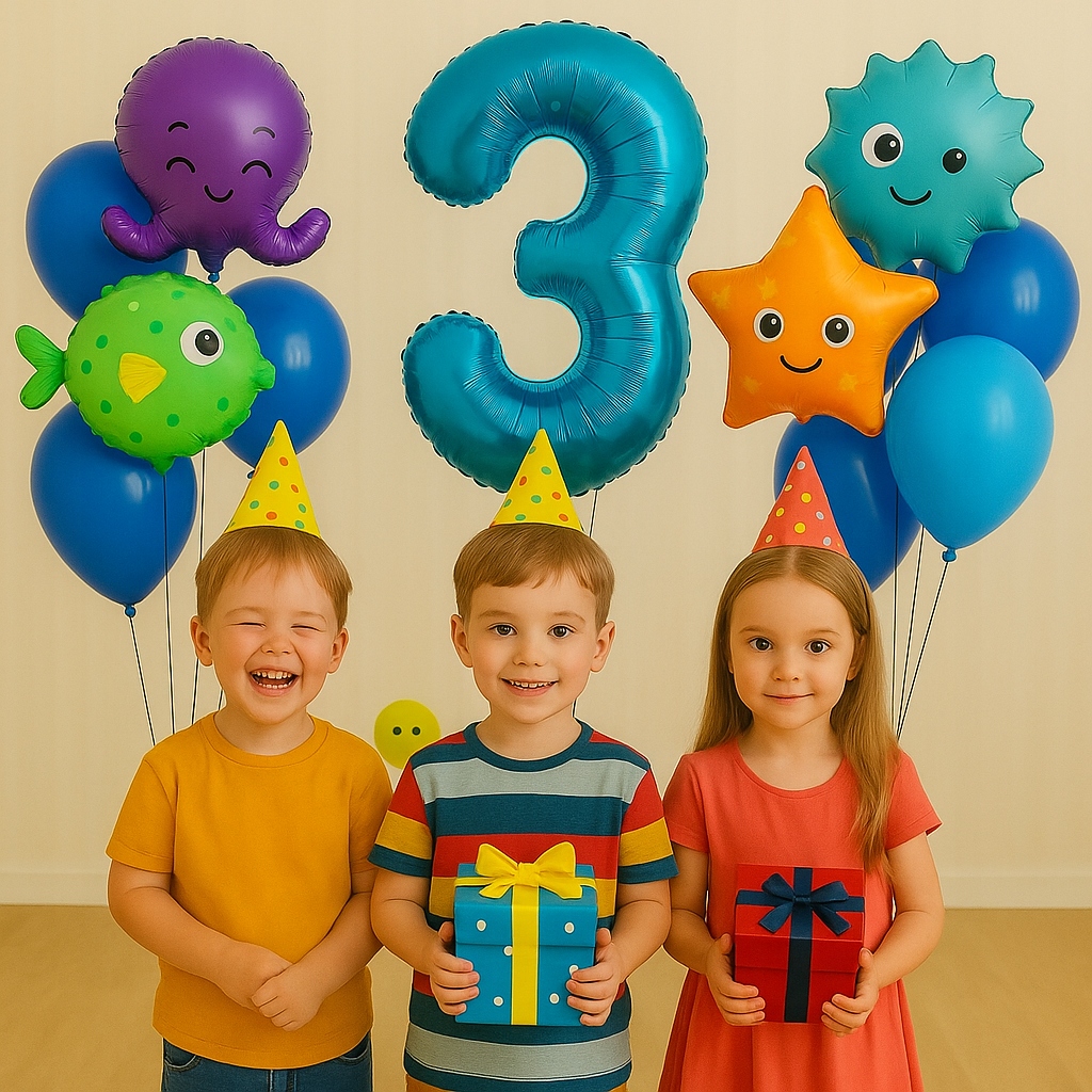 ✨ZESTAW BALONÓW MORSKICH + CYFRA 3 – NIEBIESKIE ZWIERZĘTA NA URODZINY DZIECKA!