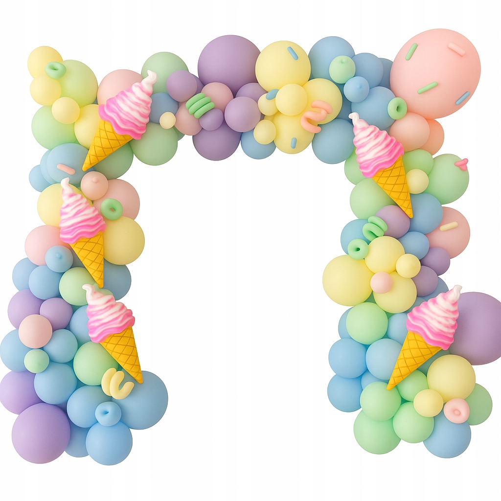 Balony na Urodziny Kolorowe Lody GIRLANDA BALONOWA Pastelowa Ścianka ZESTAW