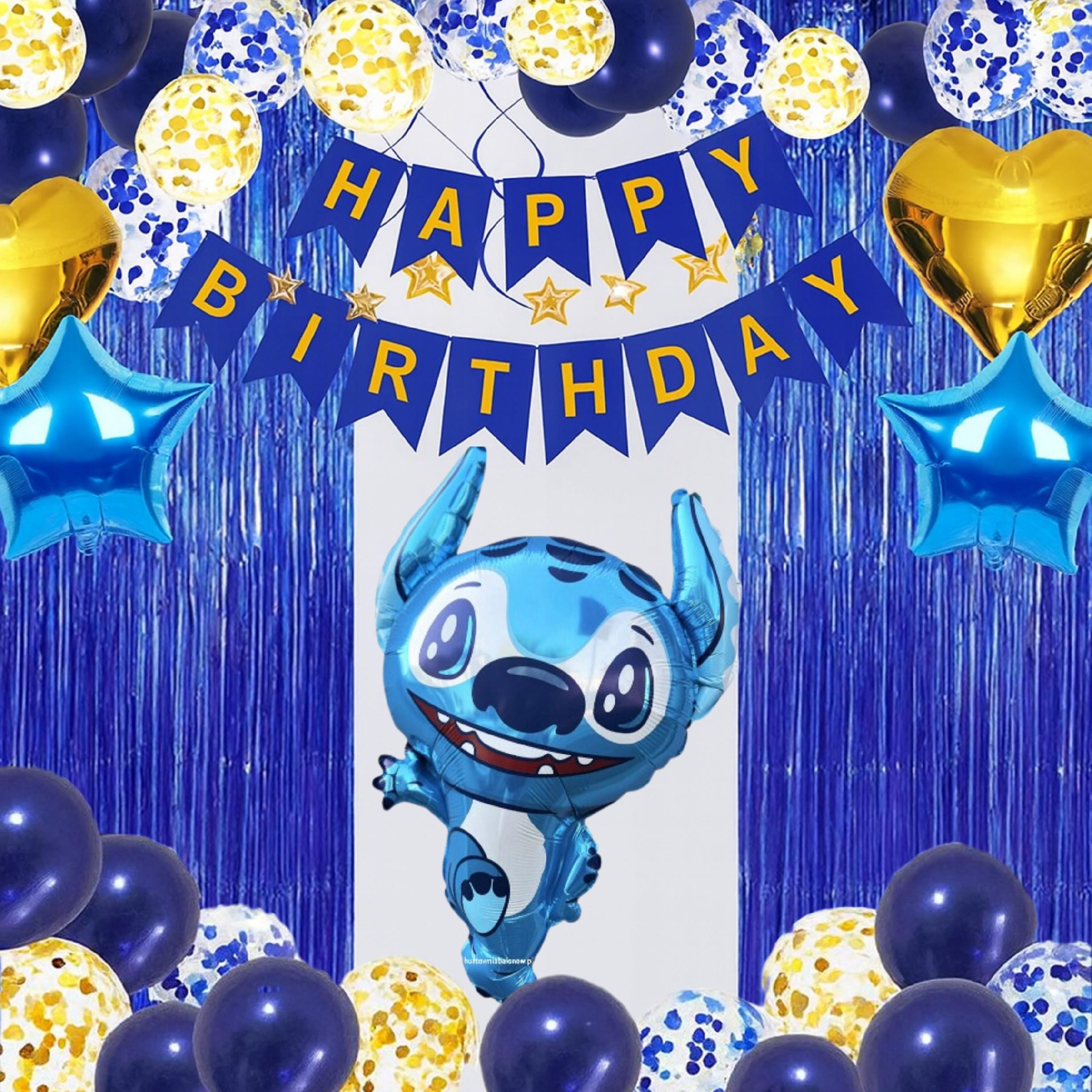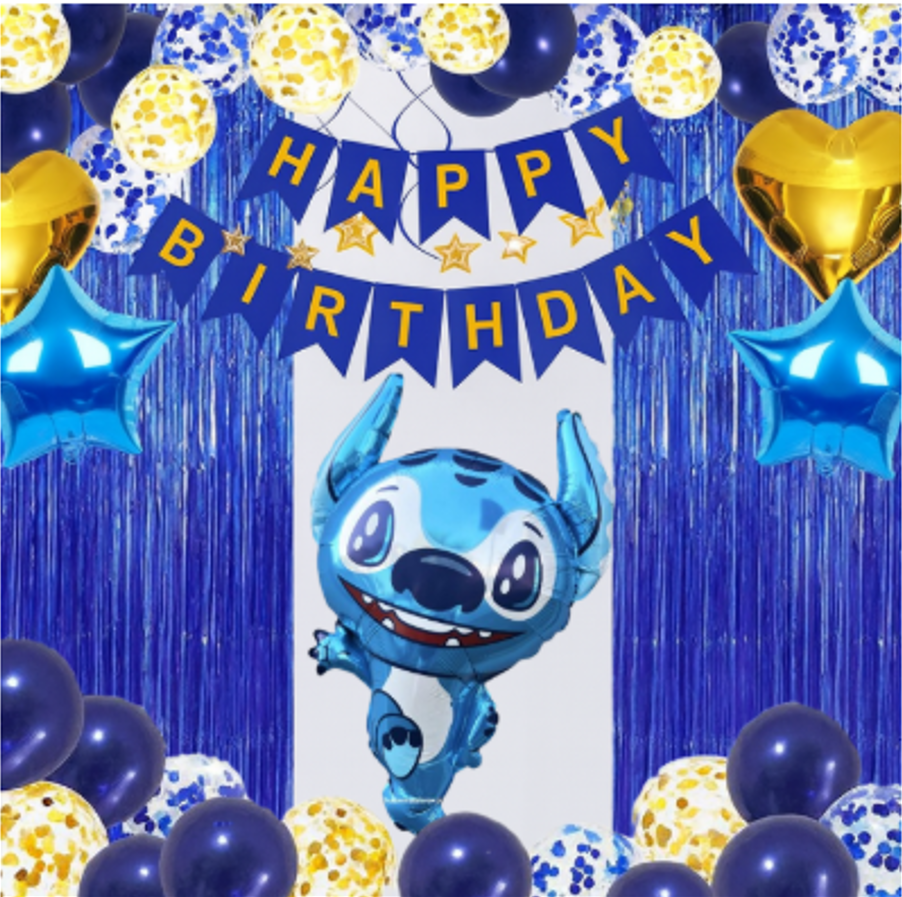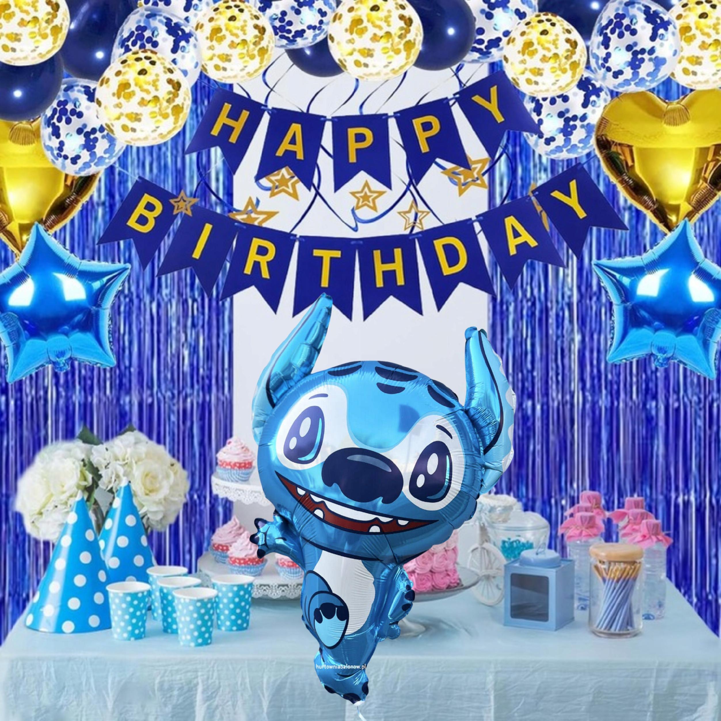 Zestaw Dekoracji Urodziny Balony Stich Napis Girlanda Konfetti Happy Birthday