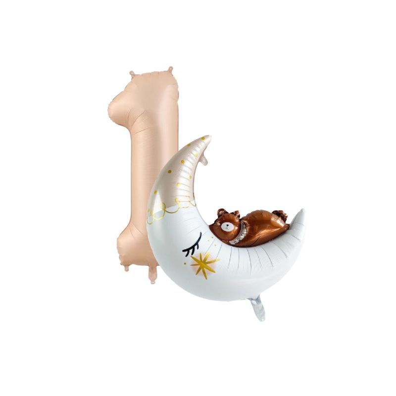 ZESTAW Miś na księżycu cyfra 1 karmelowa Roczek Urodziny dekoracje party